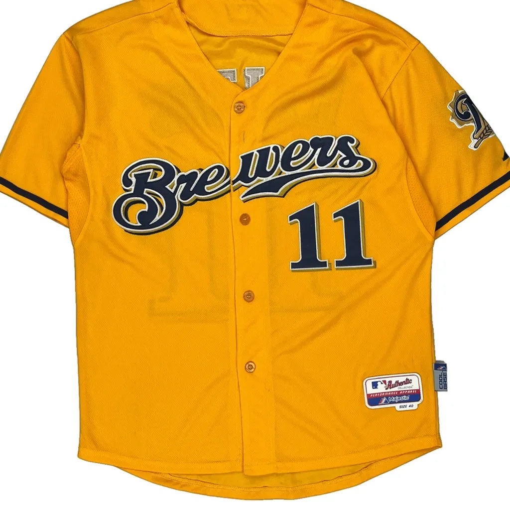 Brewers Majestic Mlb Jersey - Medium Yellow Polyester