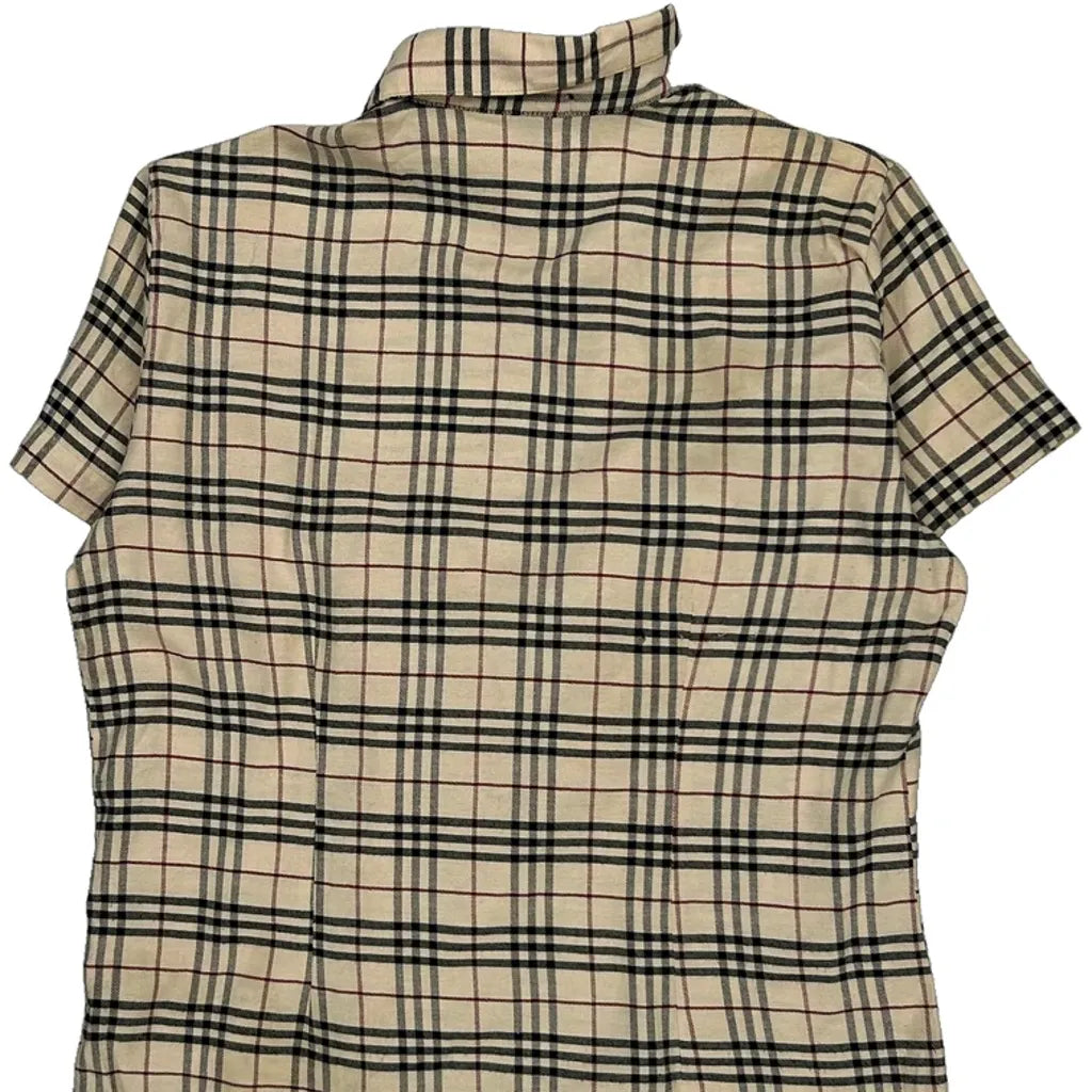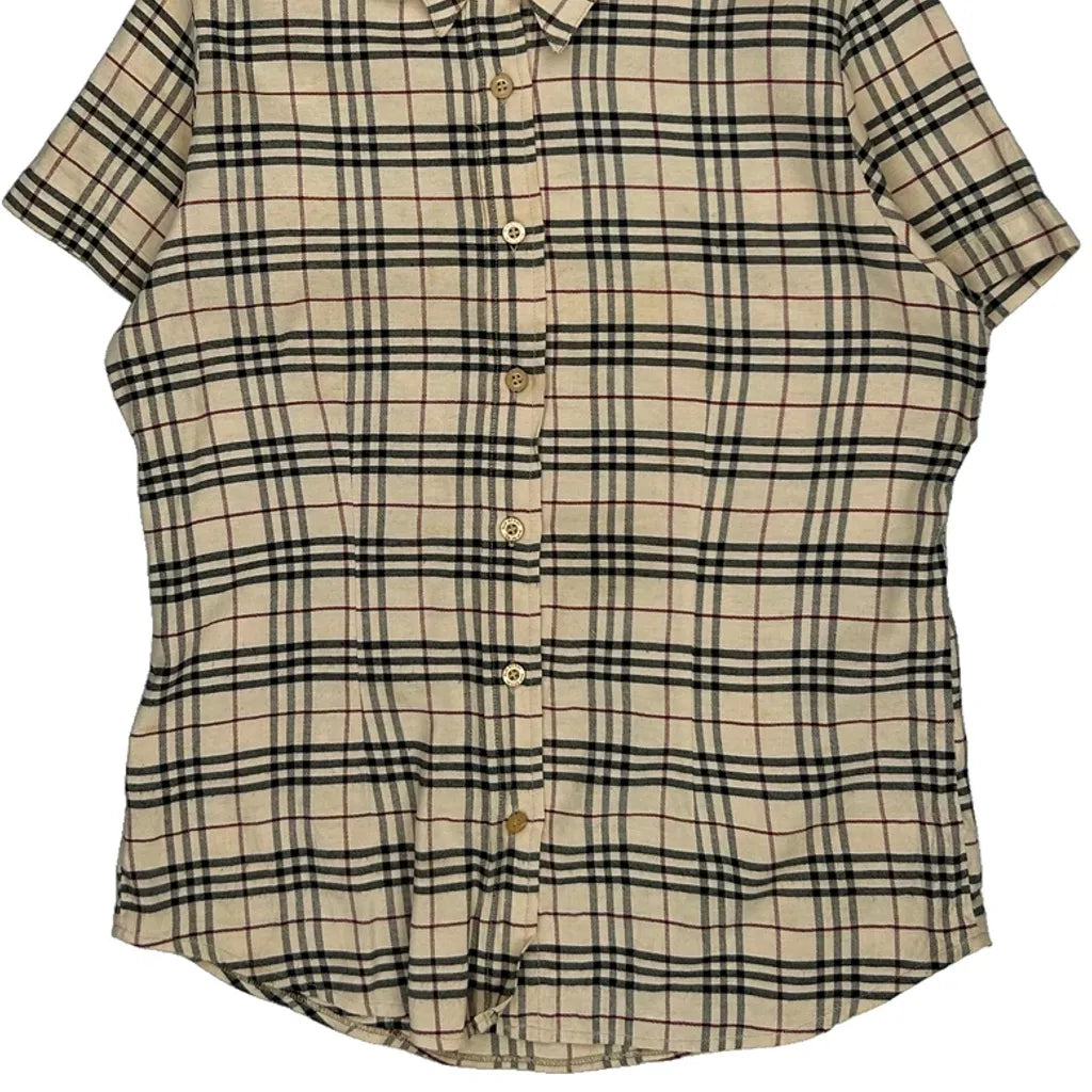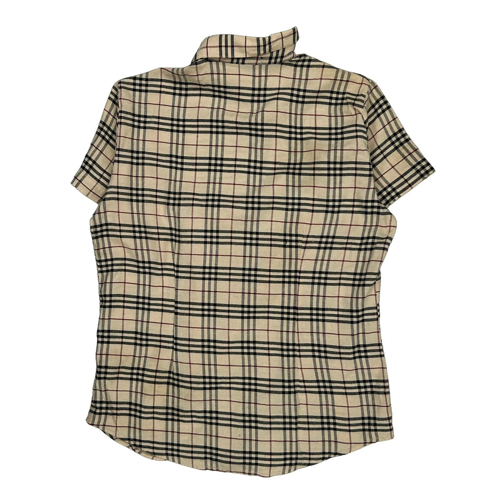 Burberry Checked Short Sleeve Shirt - Small Beige Cotton