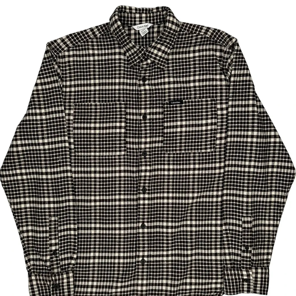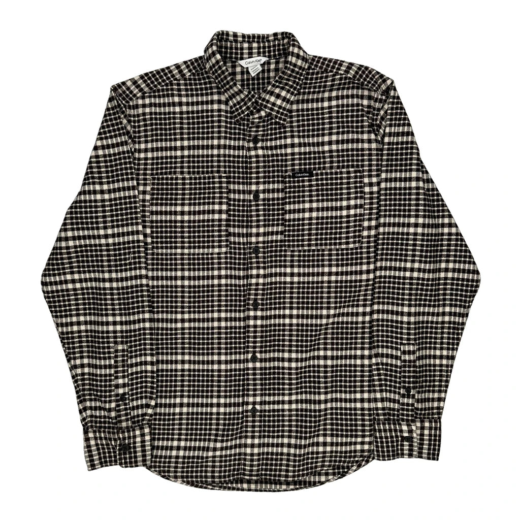 Calvin Klein Checked Flannel Shirt - Medium Black & White Cotton
