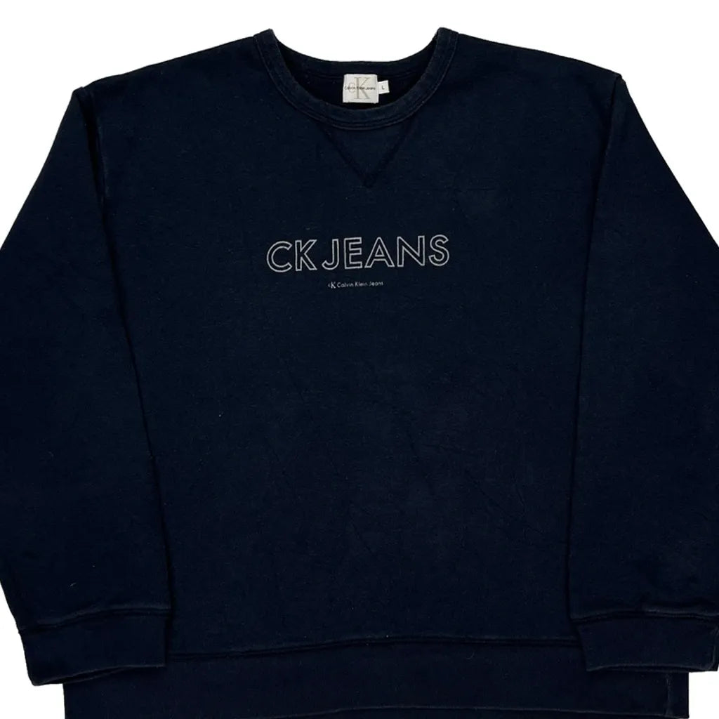 Calvin Klein Jeans Sweatshirt - Large Navy Cotton Blend