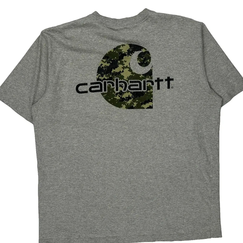 Camo Logo Carhartt T-Shirt - Large Grey Cotton