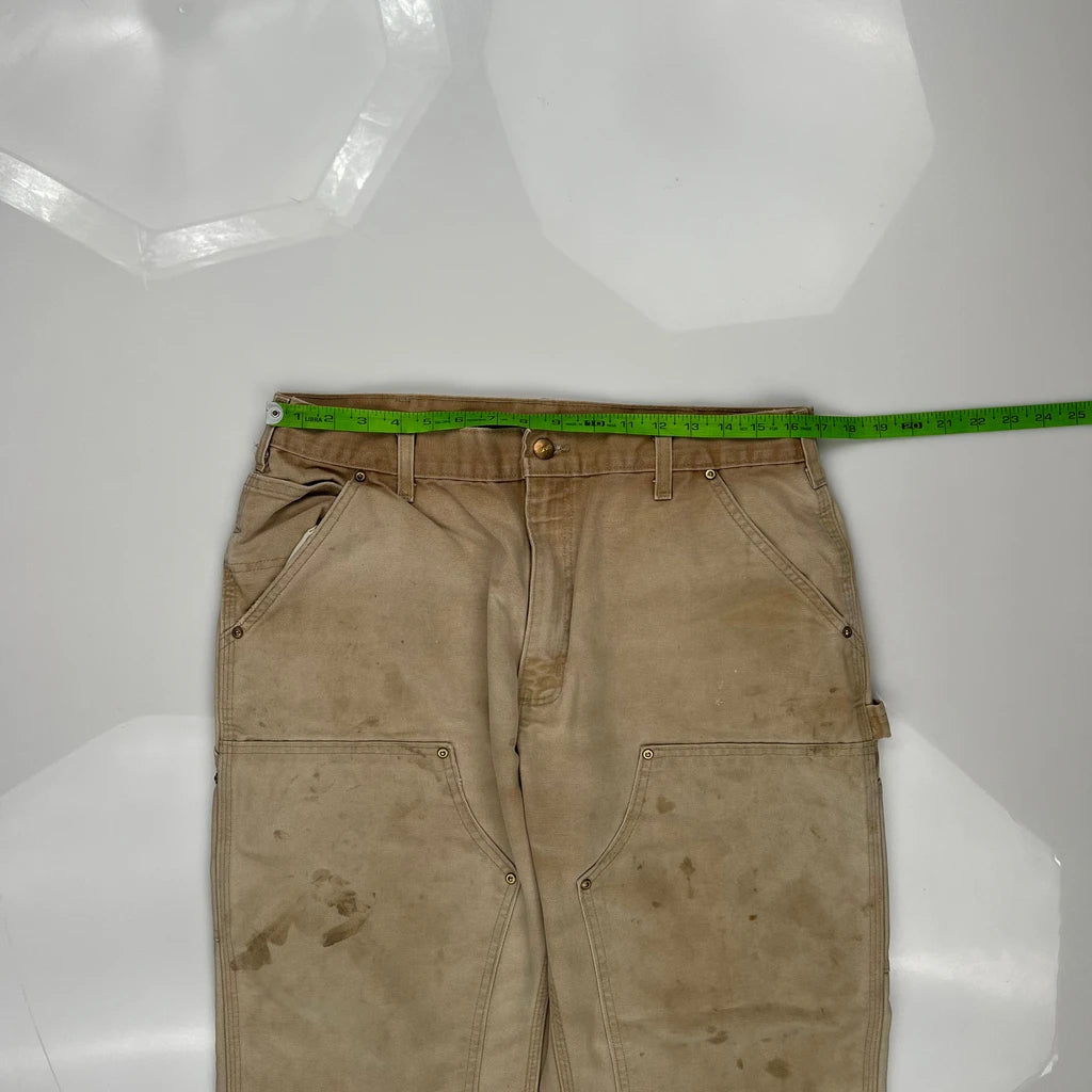 Carhartt Double Knee Carpenter Trousers - 33W 30L Beige Cotton