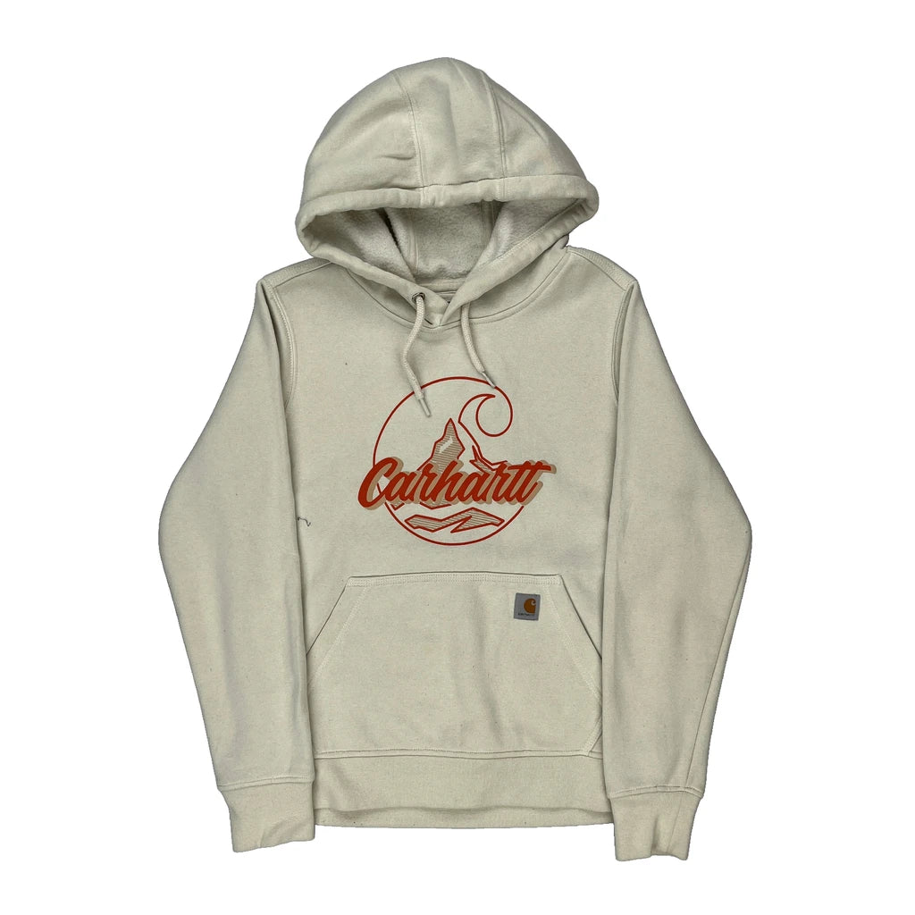 Carhartt Graphic Hoodie - Small Cream Cotton
