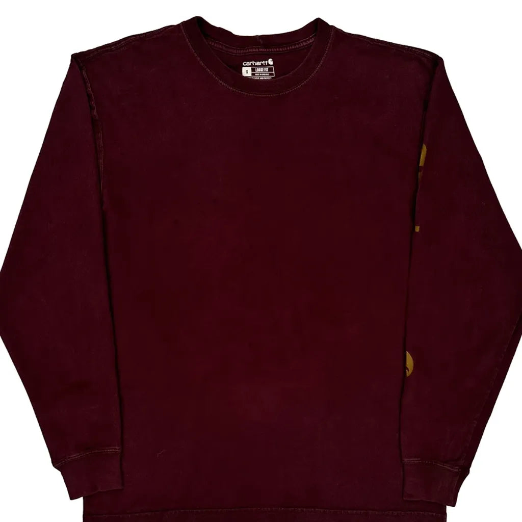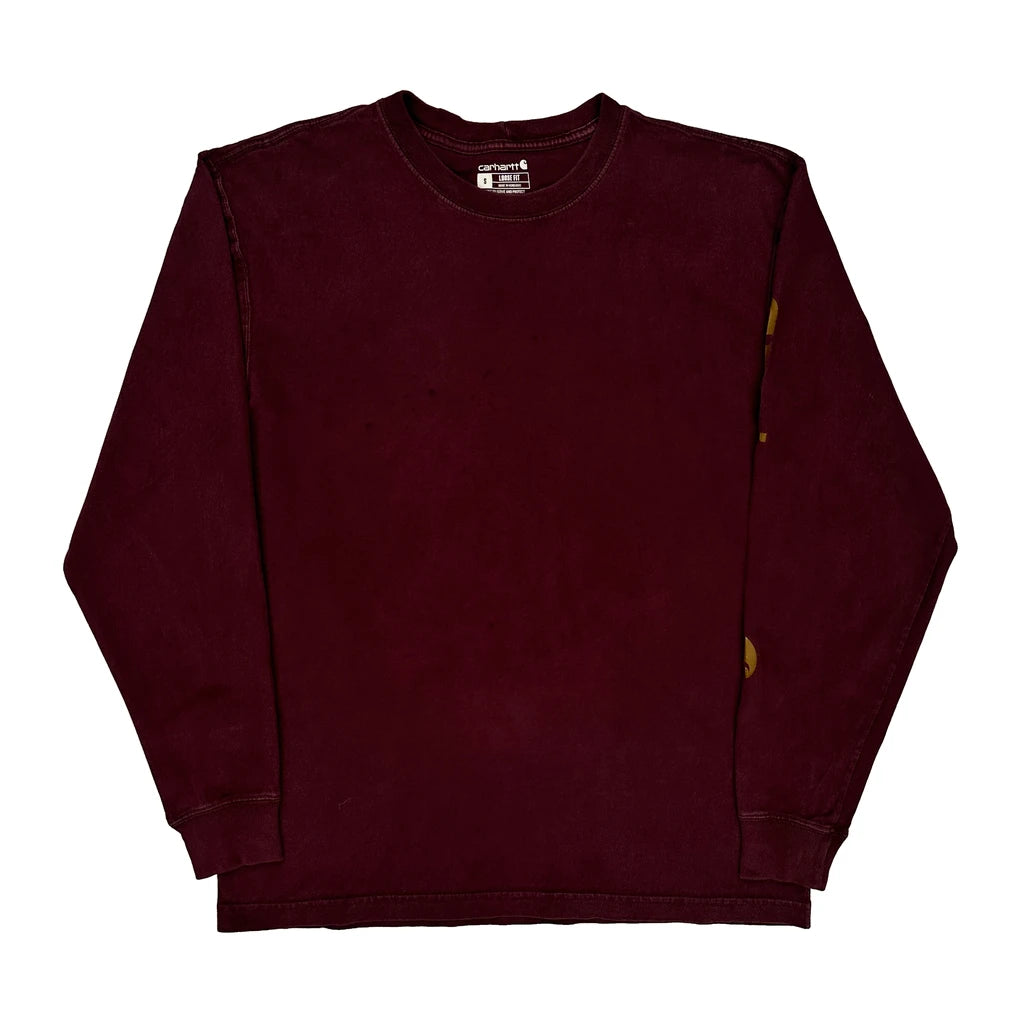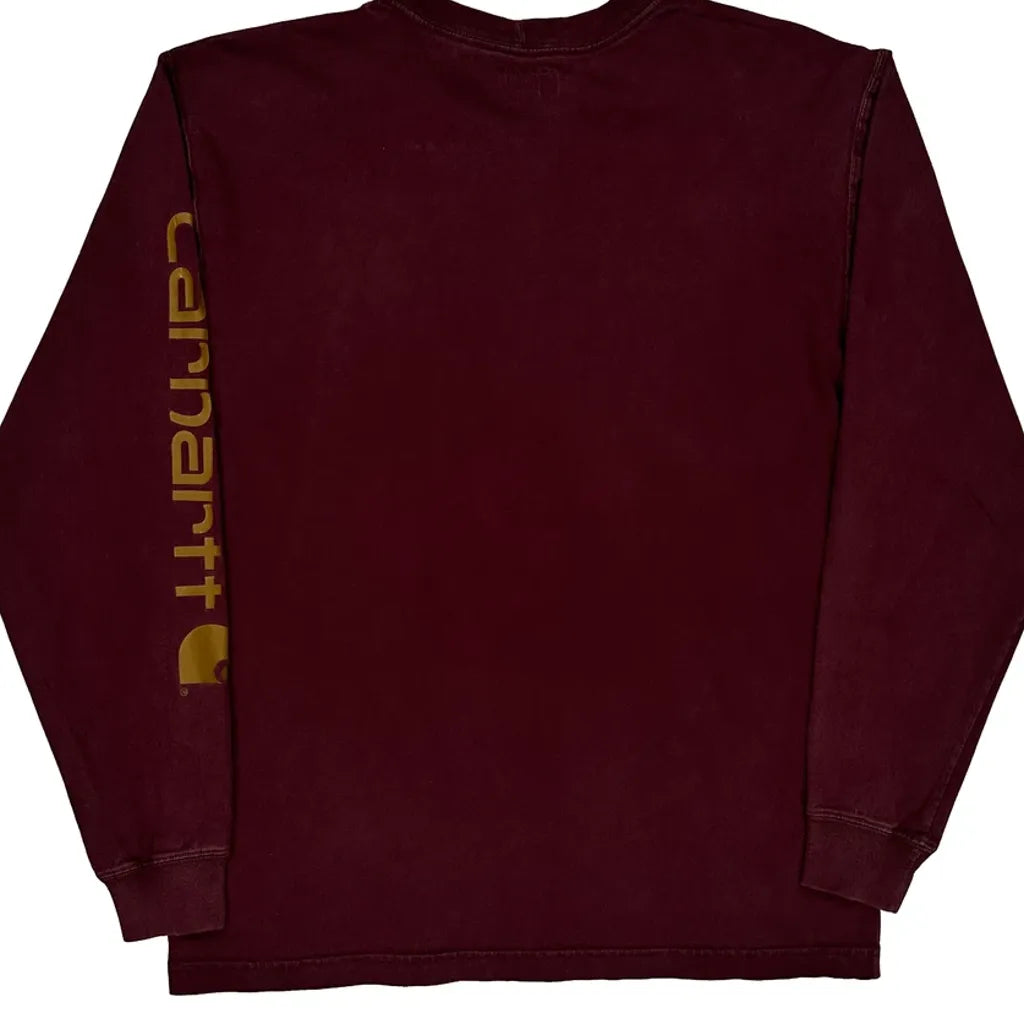 Carhartt Long Sleeve T-Shirt - Small Burgundy Cotton