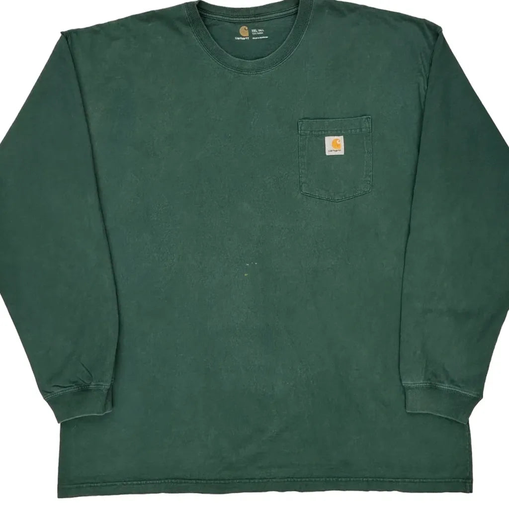 Carhartt Tall Long Sleeve T-Shirt - 2XL Green Cotton