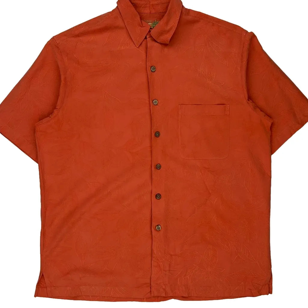 Caribbean Hawaiian Shirt - Large Orange Silk Blend