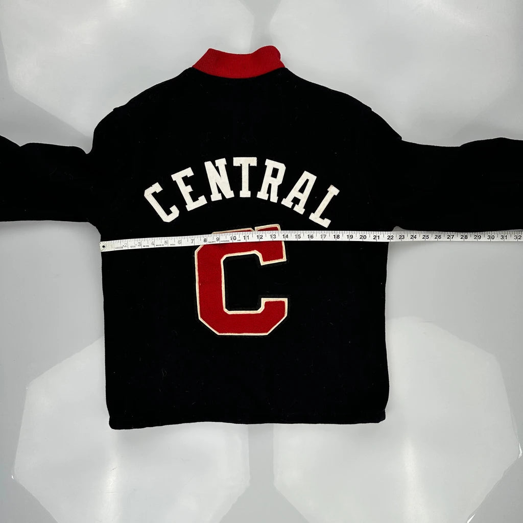 Central Hatchers Varsity Jacket - Medium Black Wool