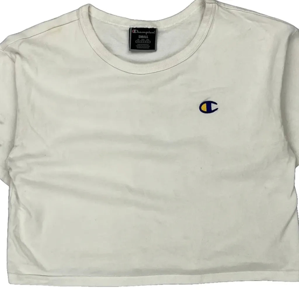 Champion Cropped T-Shirt - Small White Cotton