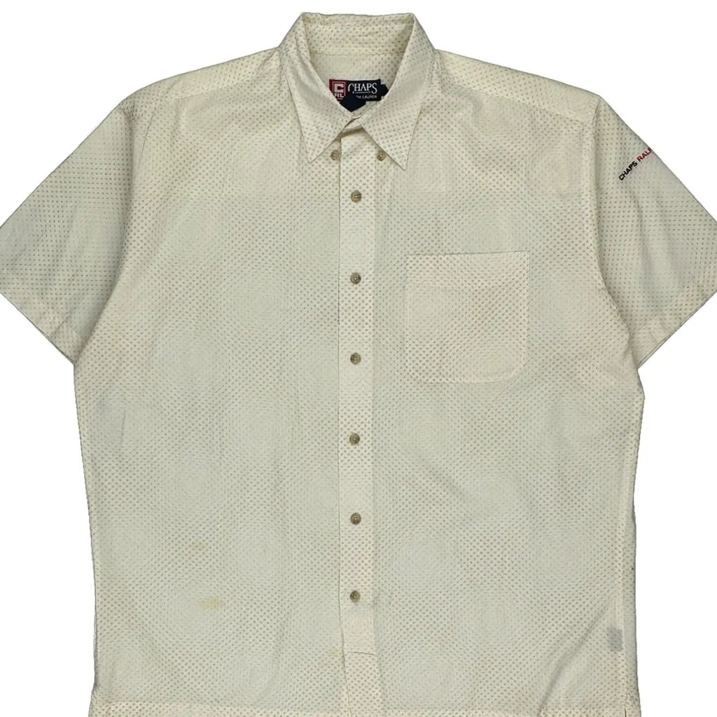 Chaps Ralph Lauren Polka Dot Short Sleeve Shirt - Large Cream Cotton