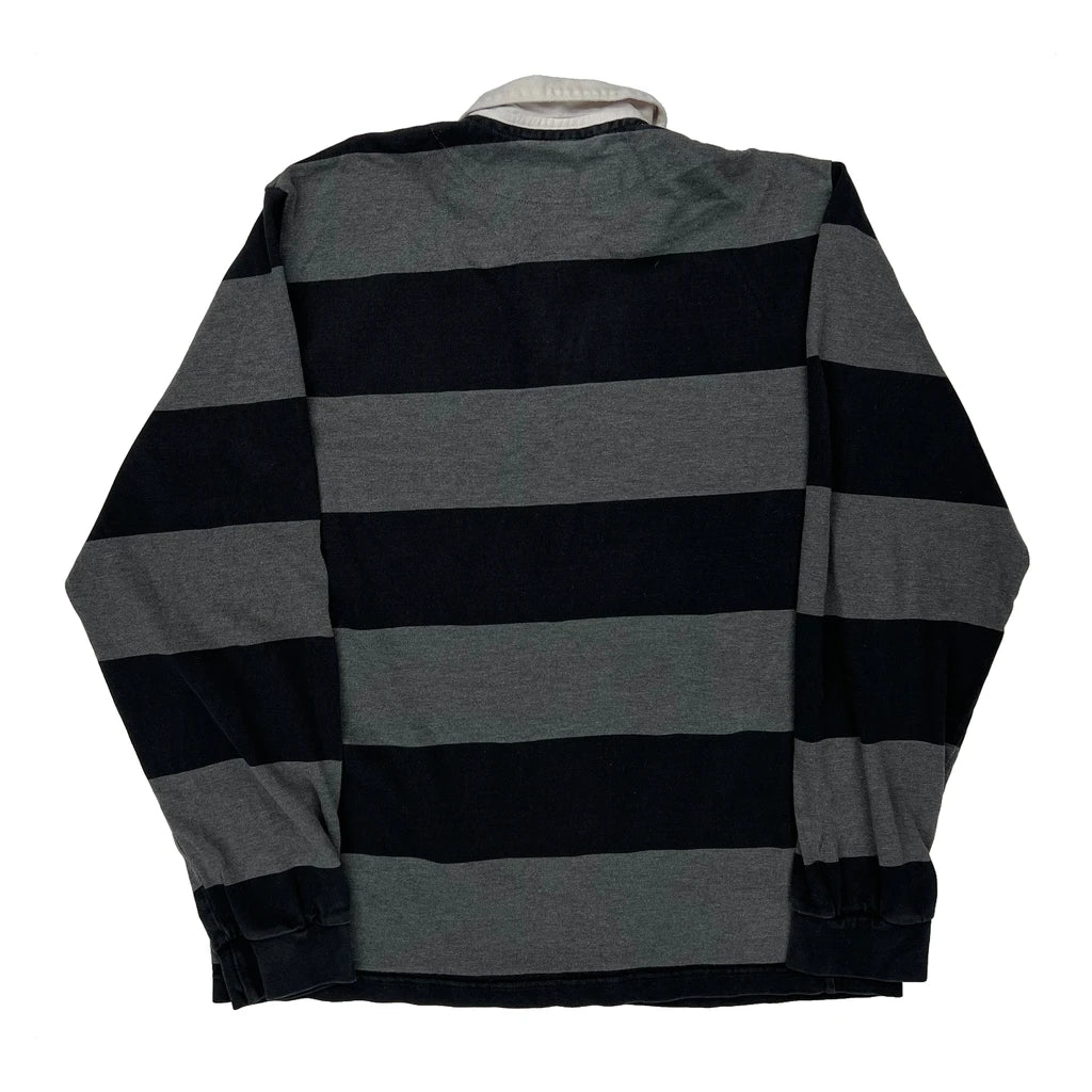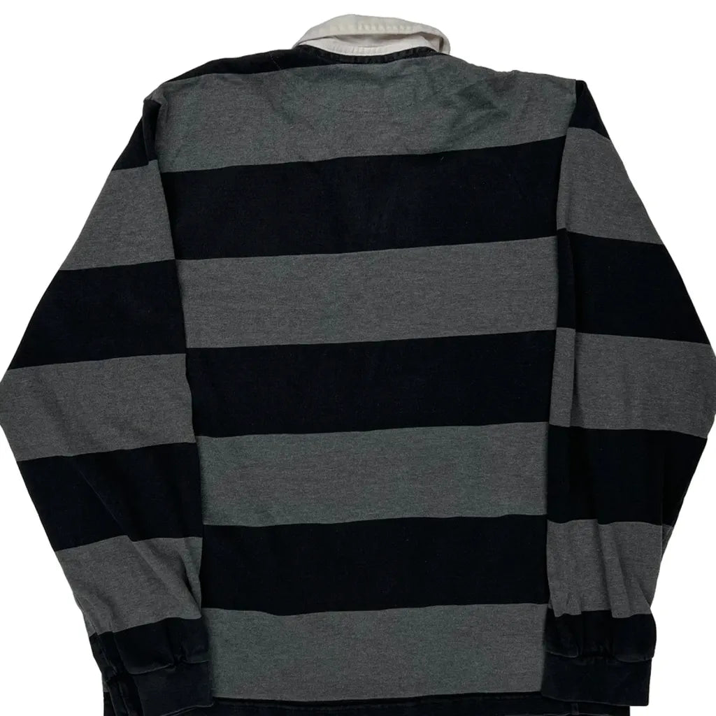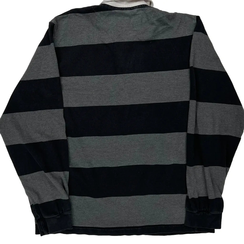 Black And Grey Striped Rugby Shirt With White Collar
