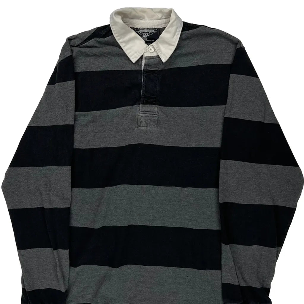 Charles River Apparel Striped Rugby Shirt - Large Black Cotton
