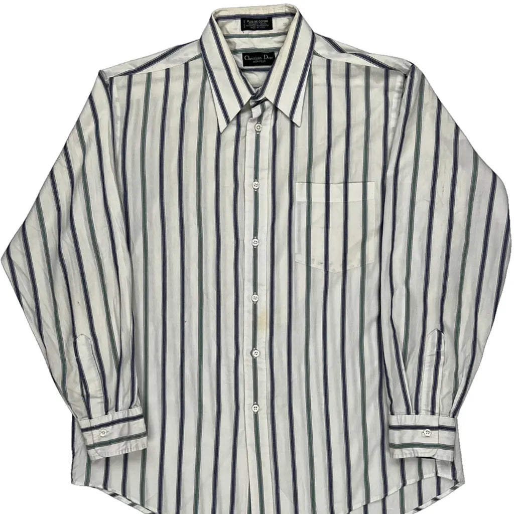 Christian Dior Striped Shirt - Large Blue Cotton Blend