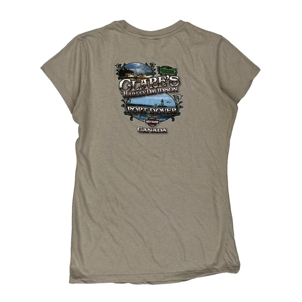 Clare'S Harley Davidson Port Dover Canada Harley Davidson Graphic T-Shirt - Large Beige Cotton