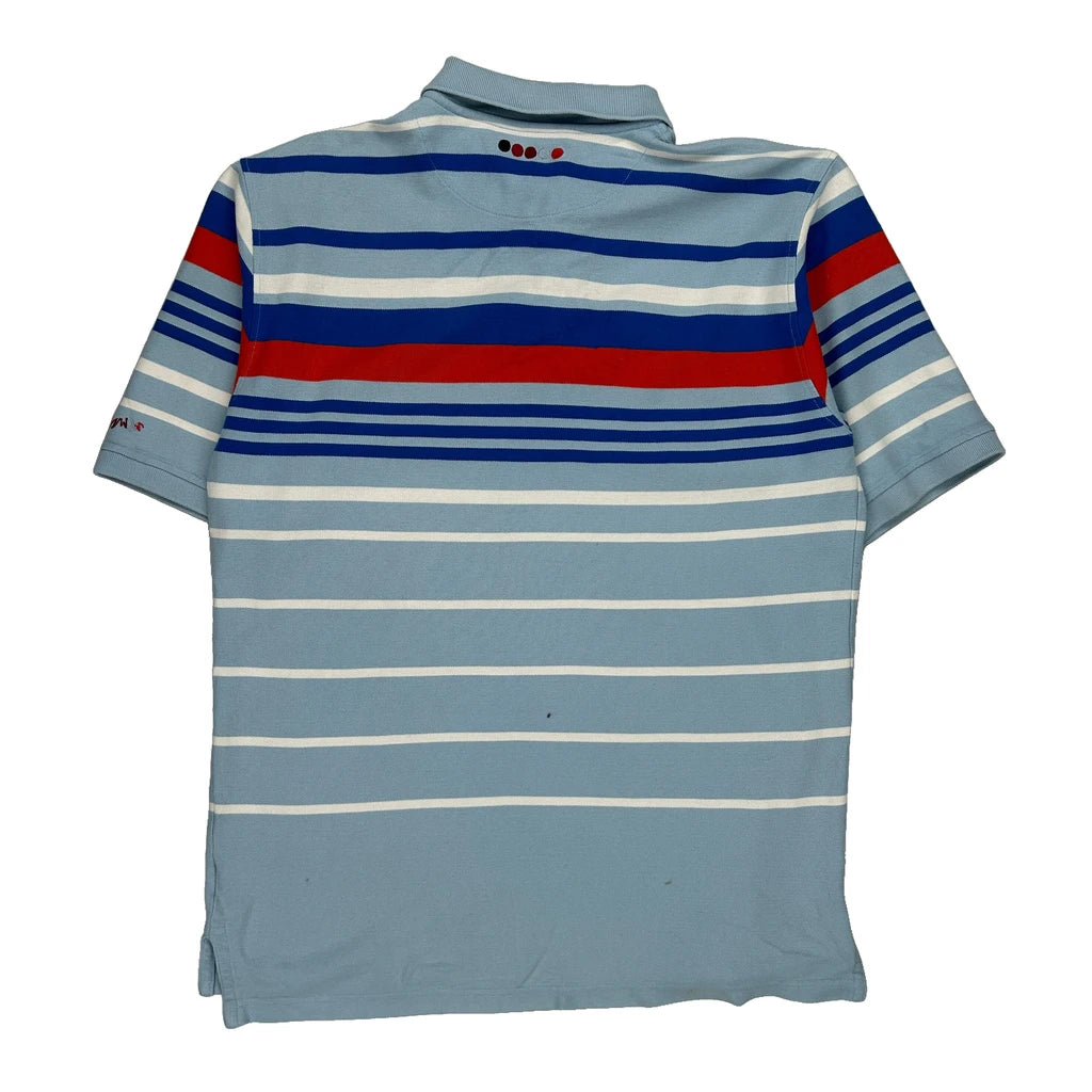 Coogi Striped Polo Shirt - XL Blue Cotton