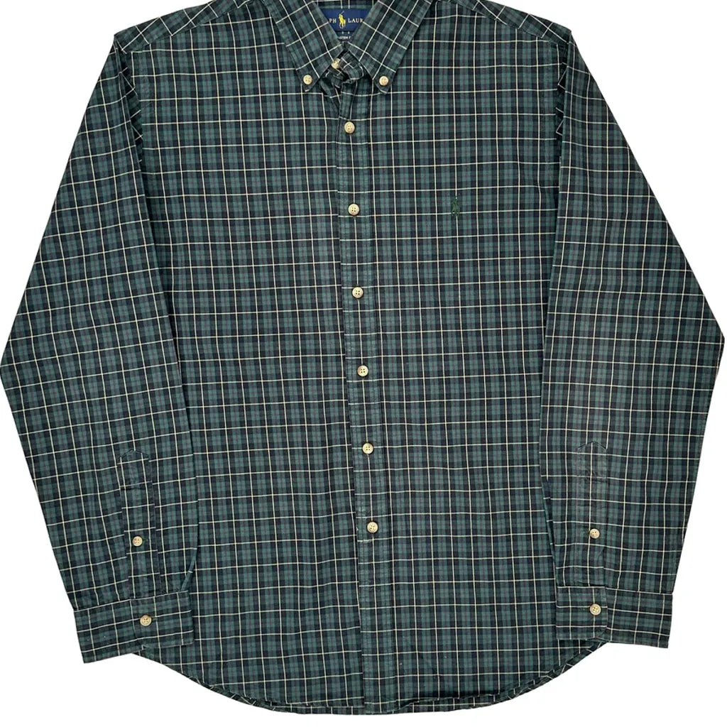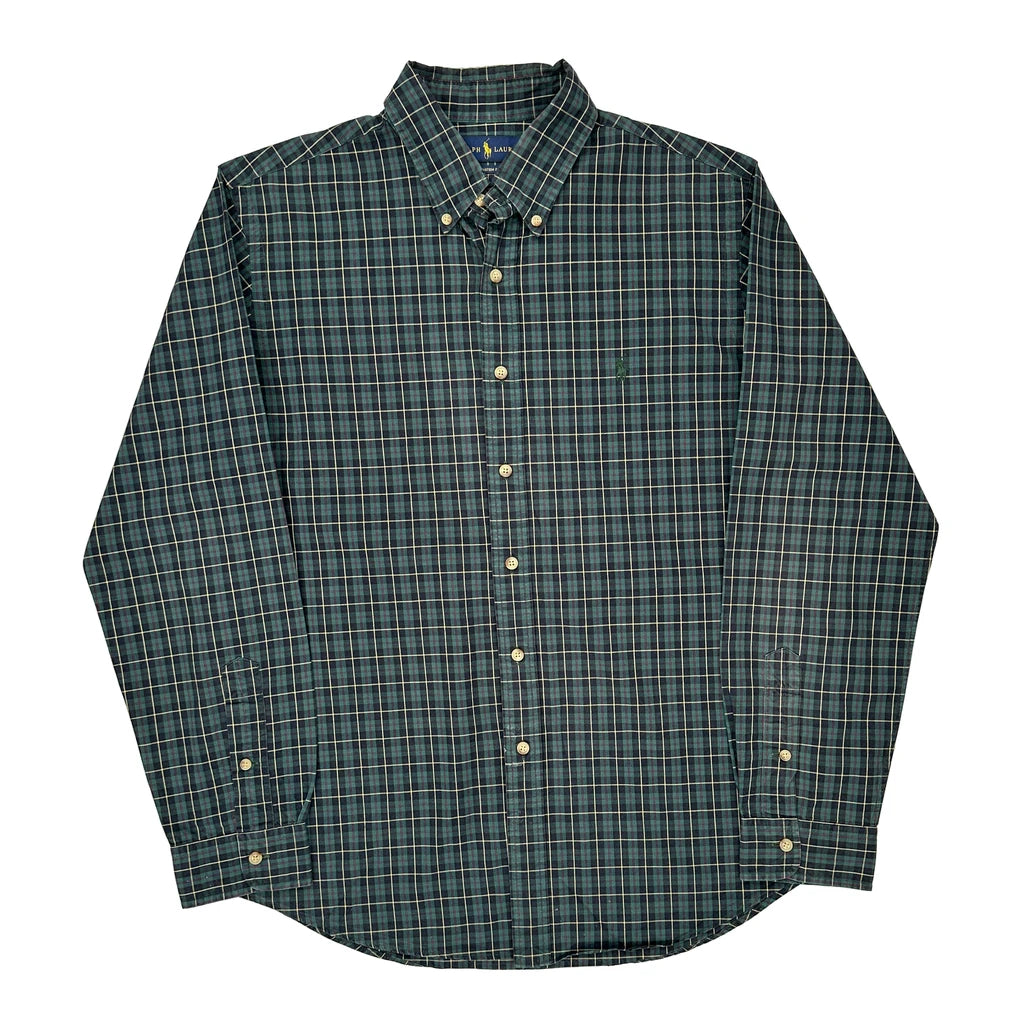 Custom Fit Ralph Lauren Checked Shirt - Large Green Cotton