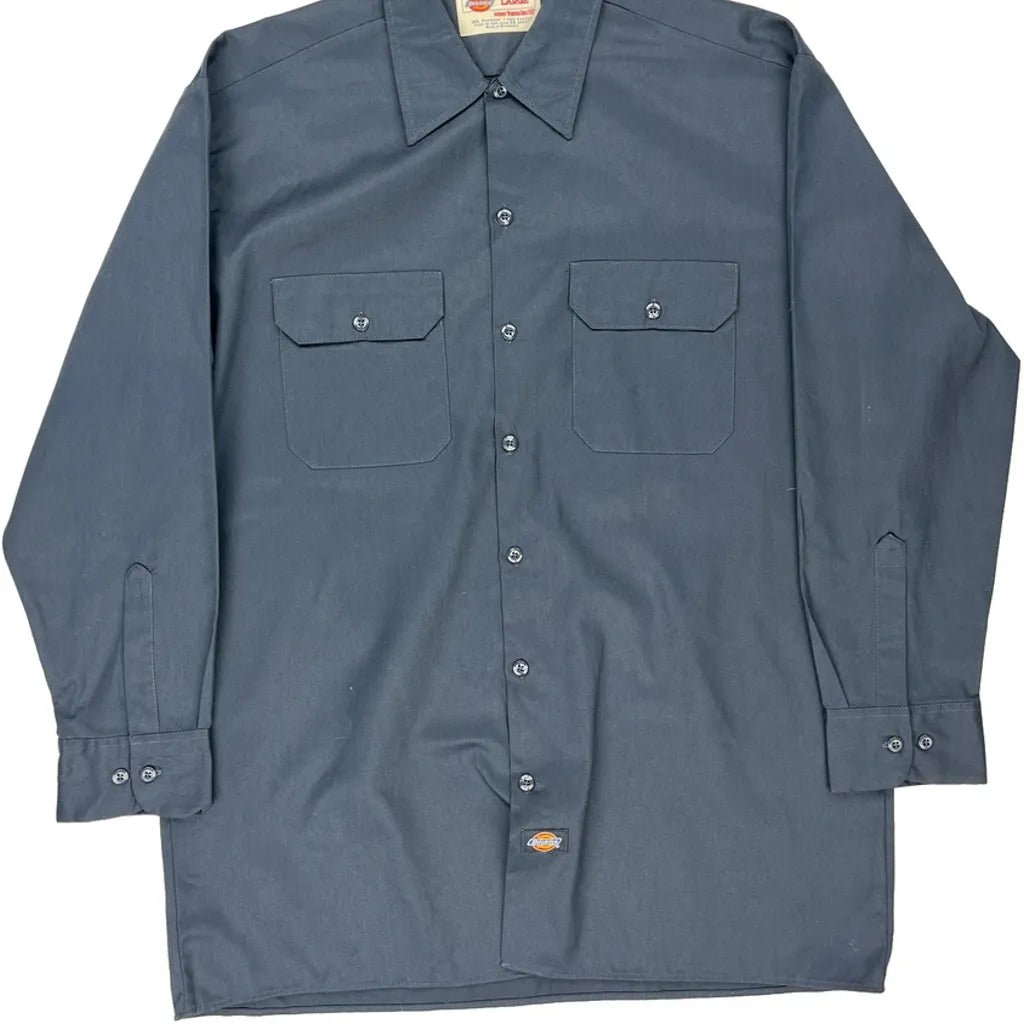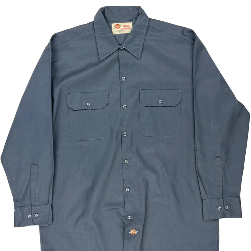 Dickies Shirt - Large Blue Polyester Blend