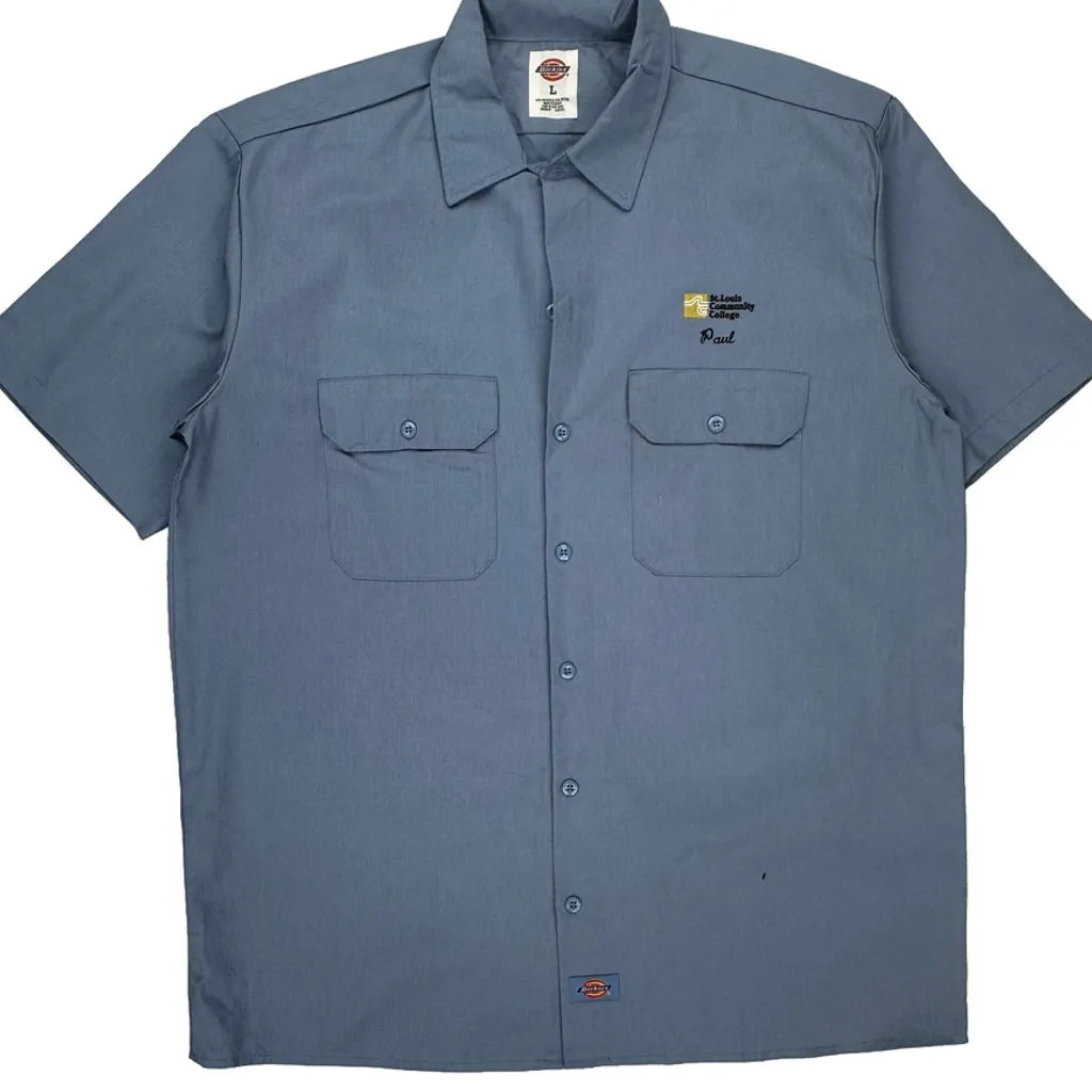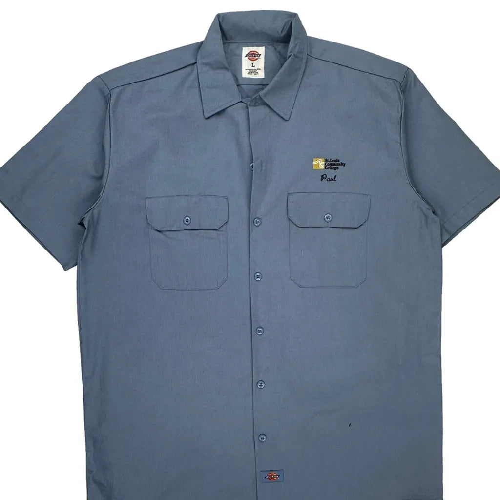 Dickies Short Sleeve Shirt - Large Blue Polyester Blend