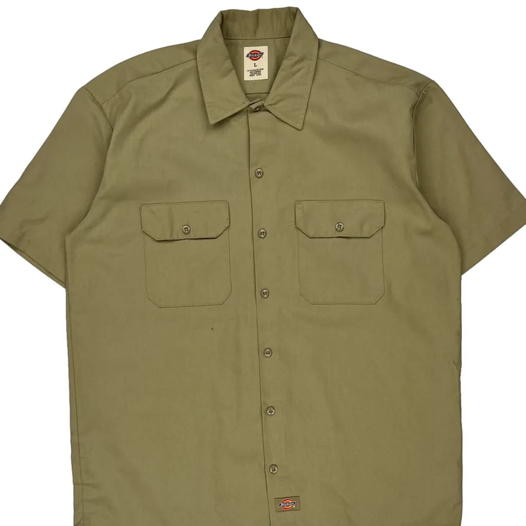 Dickies Short Sleeve Shirt - Large Khaki Polyester Blend