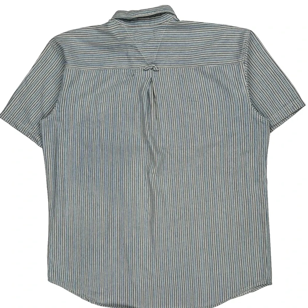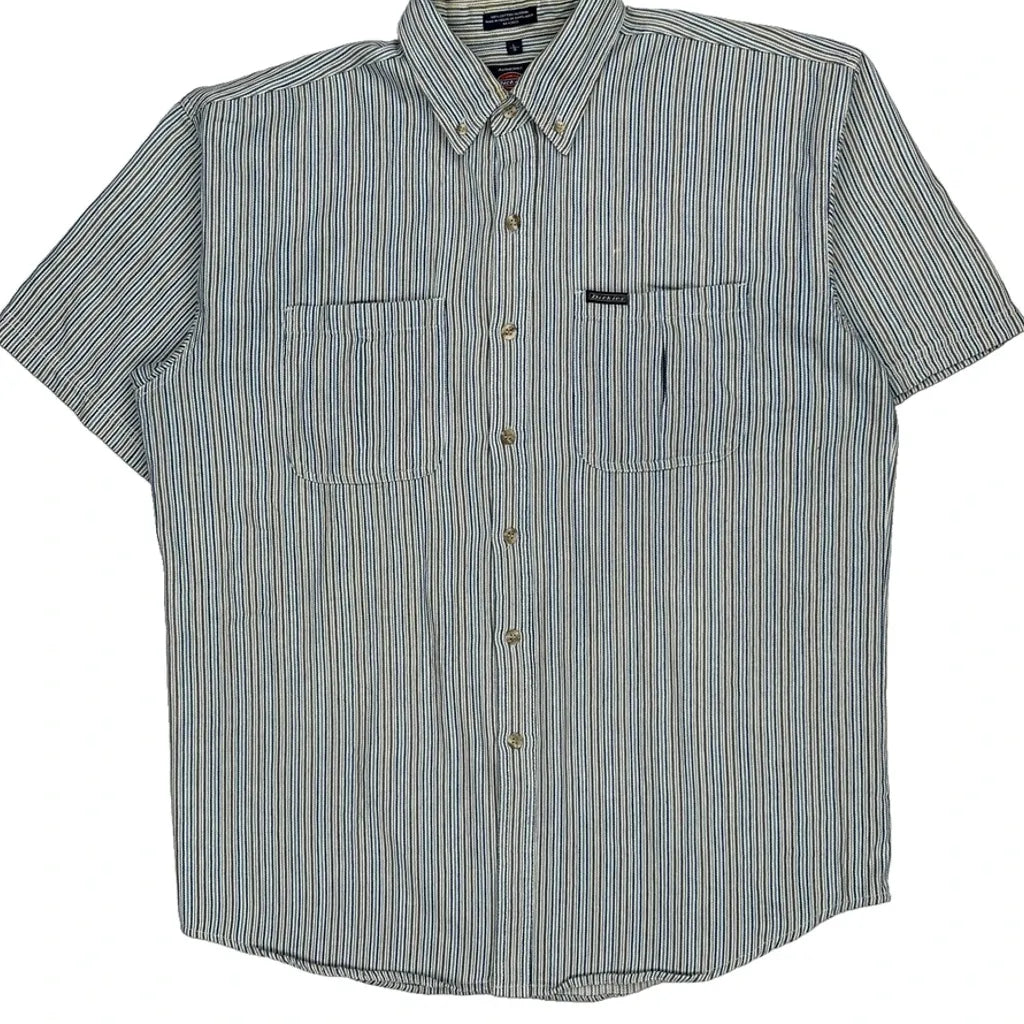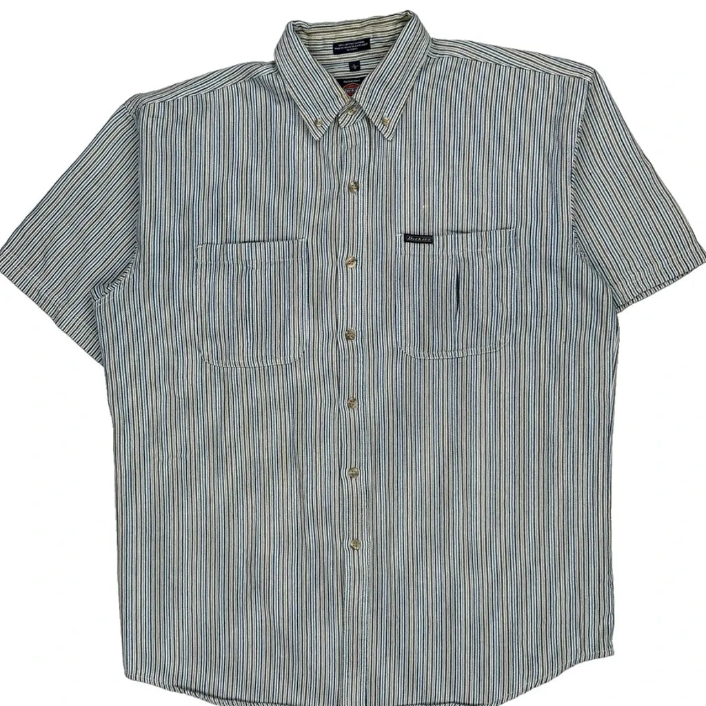 Dickies Striped Short Sleeve Shirt - Large White Cotton