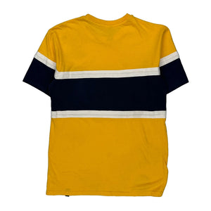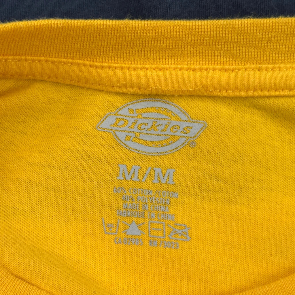 Yellow Dickies T-Shirt With Navy And White Stripes, Spellout Logo.