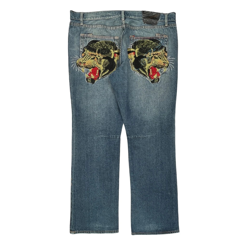 Ed Hardy Graphic Jeans - 40W 32L Blue Cotton