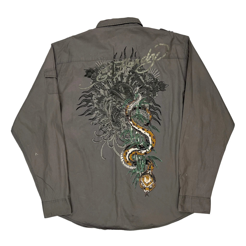 Ed Hardy Graphic Shirt - 2XL Grey Cotton