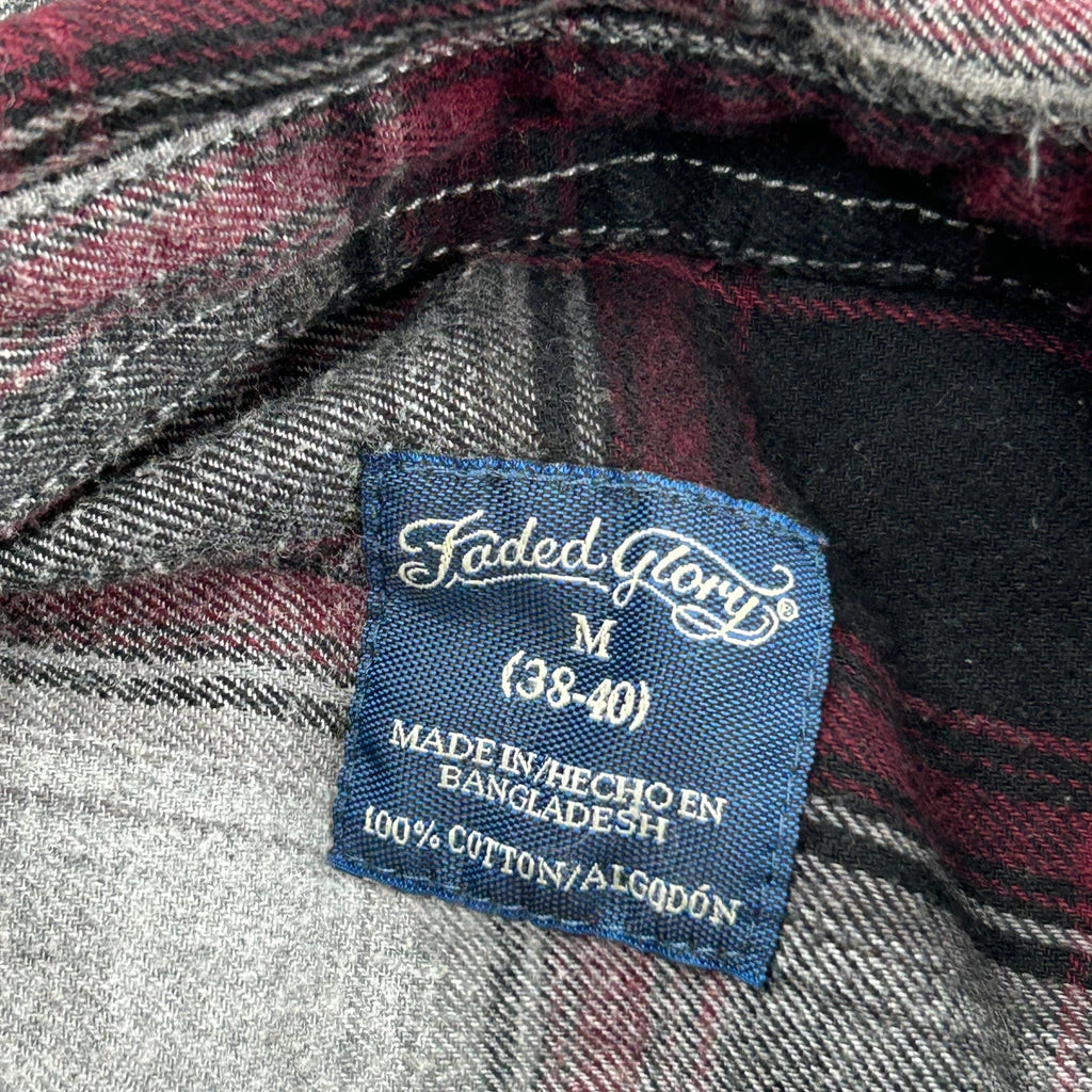 Faded Glory Checked Flannel Shirt - Medium Grey Cotton