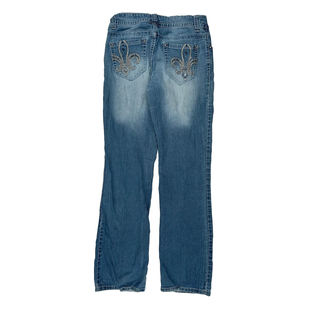 Embroidered Back Pockets With Studded Details
