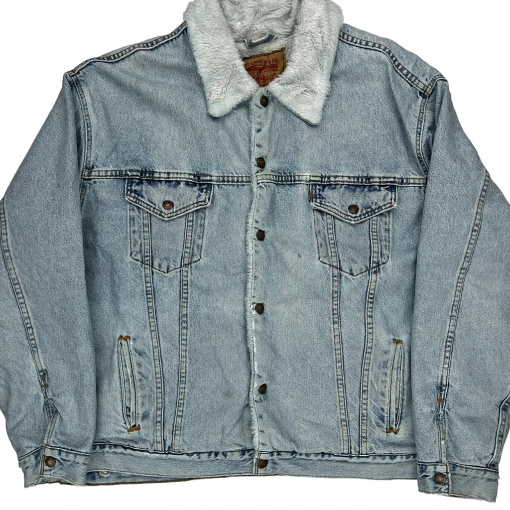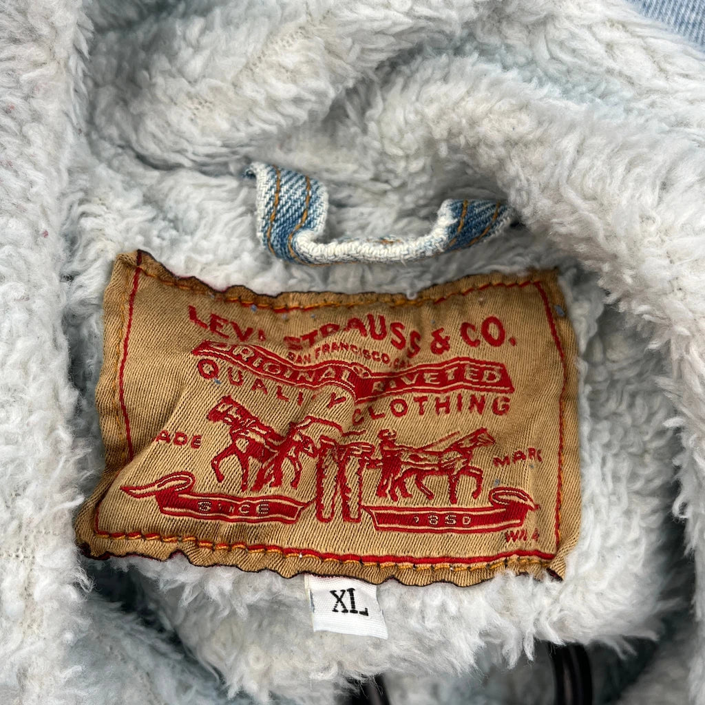 Fleece Lined Levis Denim Jacket - XL Light Wash Cotton