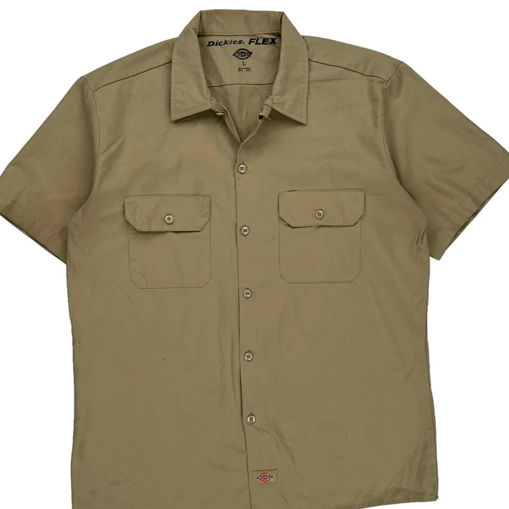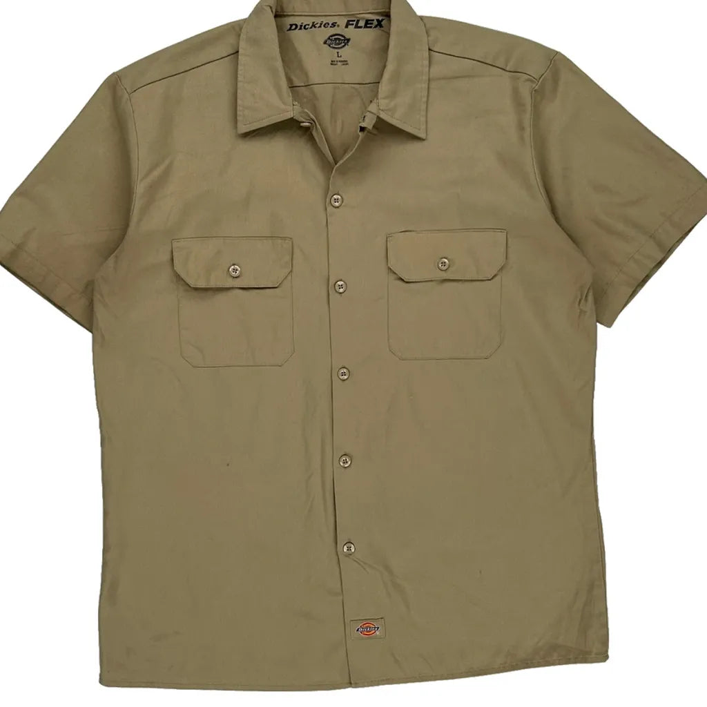Flex Dickies Short Sleeve Shirt - Large Beige Cotton