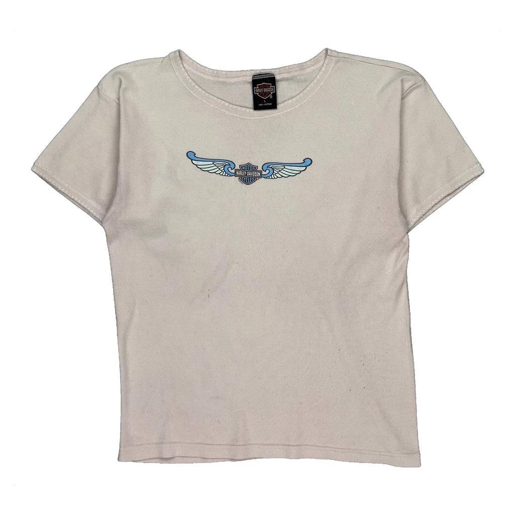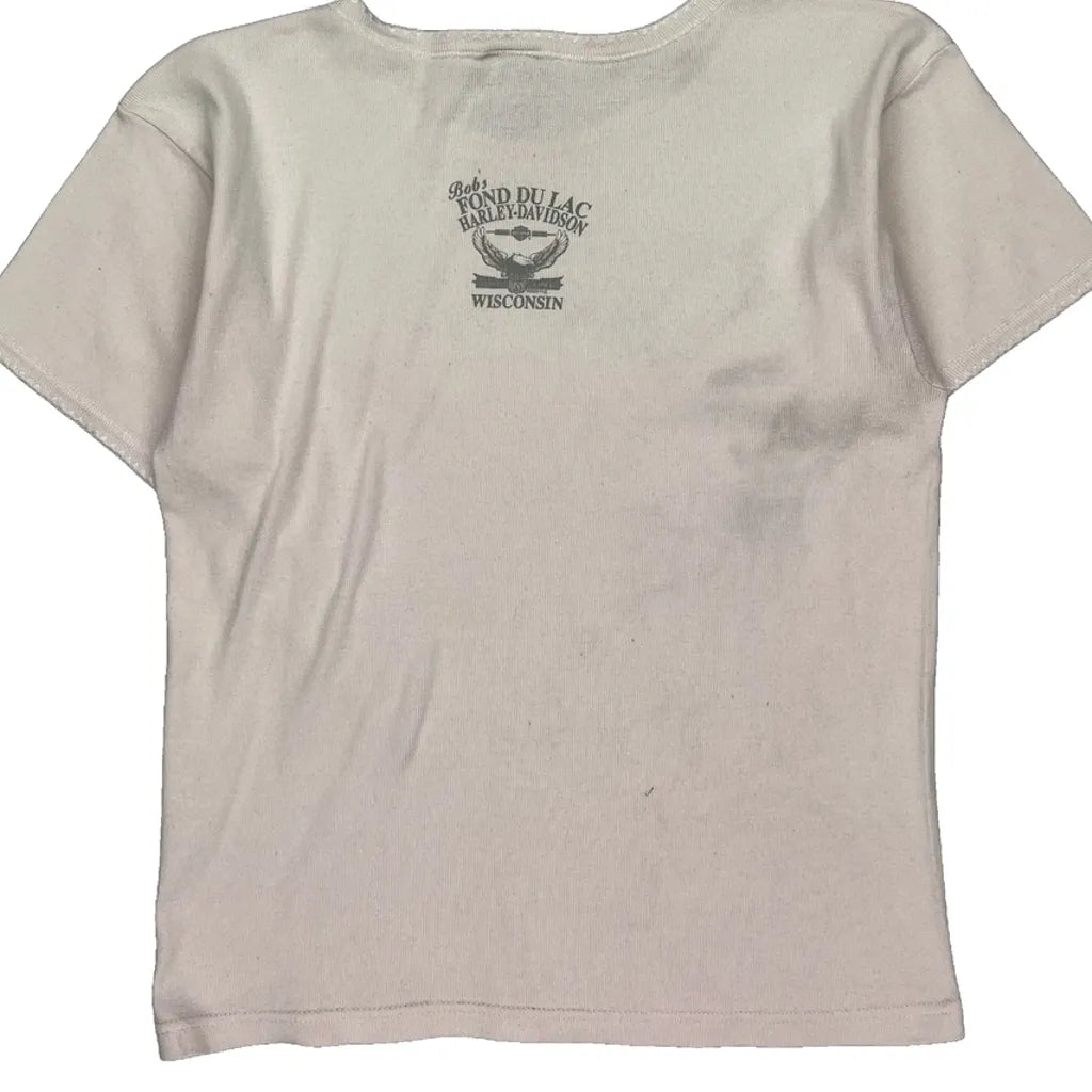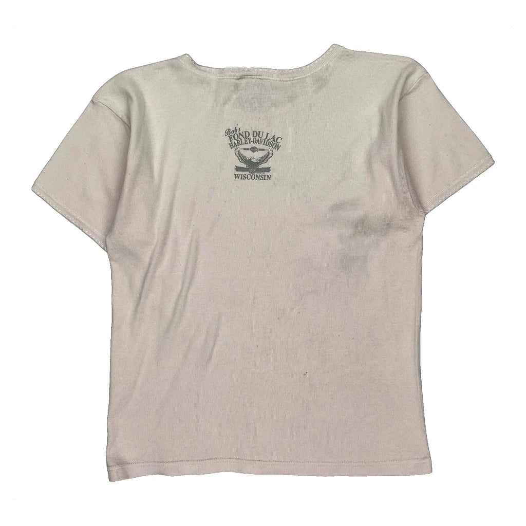 Fond Du Lac Wisconsin Harley Davidson Graphic T-Shirt - Large Cream Cotton
