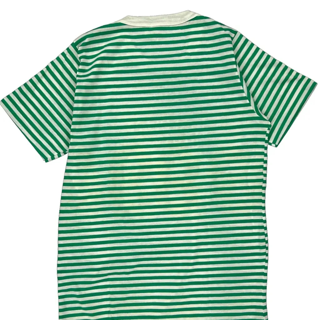 Green And White Striped T-Shirt With Freeport Bahamas 89 Print