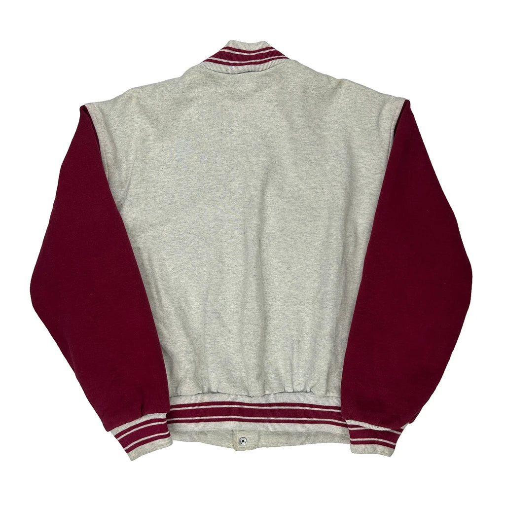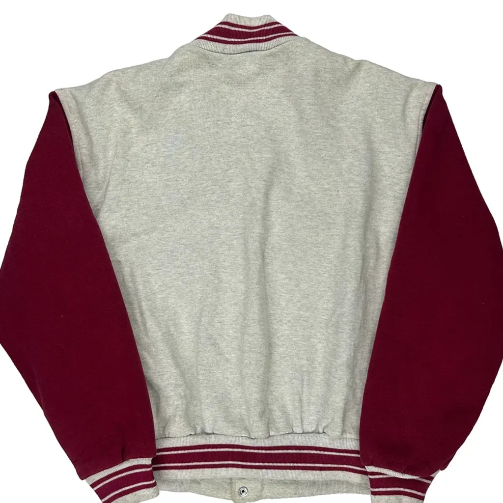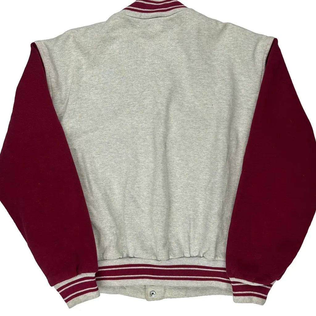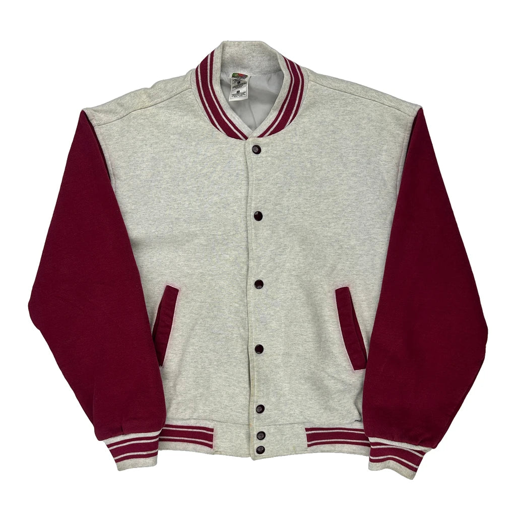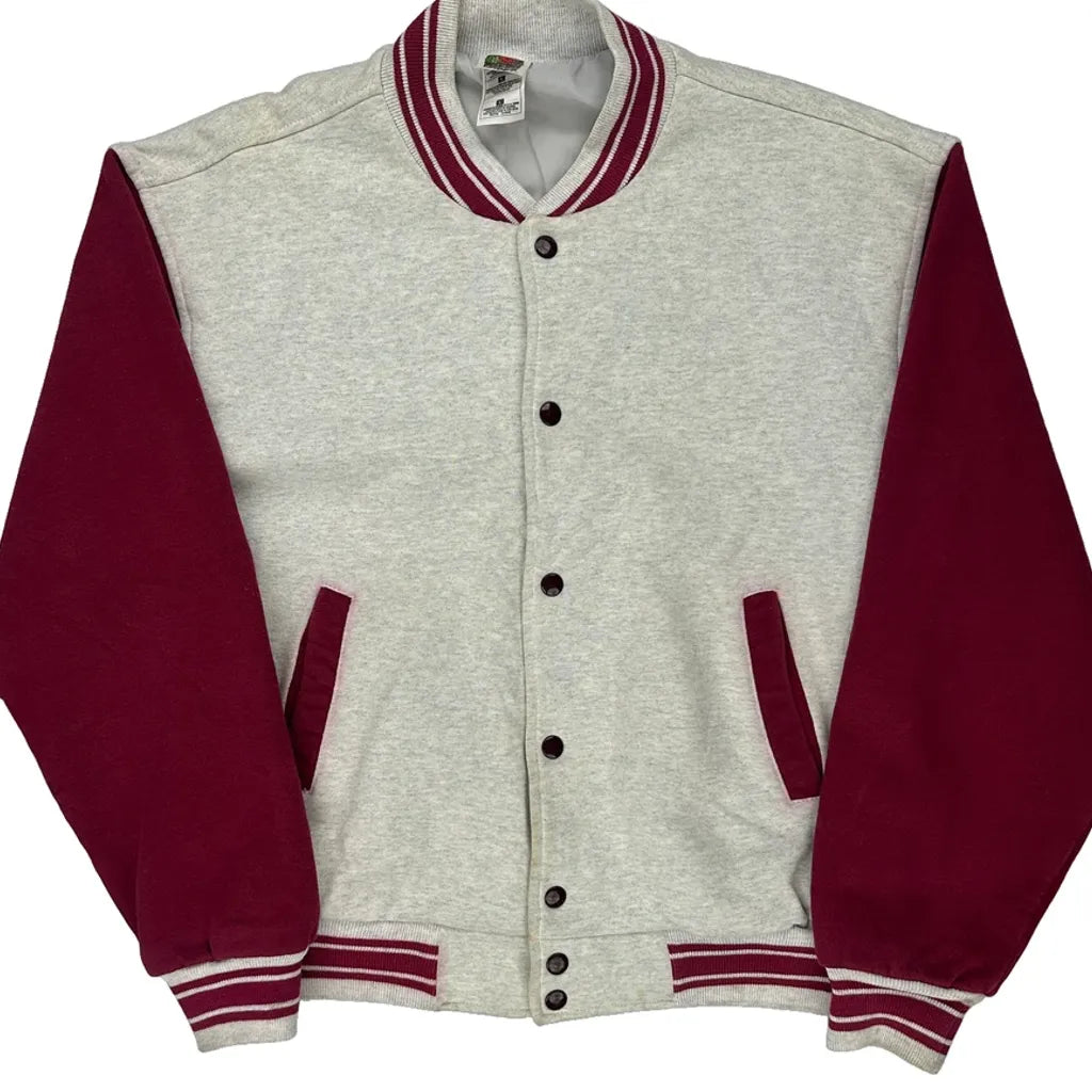 Two-Tone Design With Grey Body And Red Sleeves.