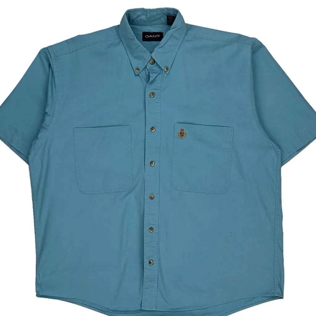 Gant Short Sleeve Shirt - Large Blue Cotton