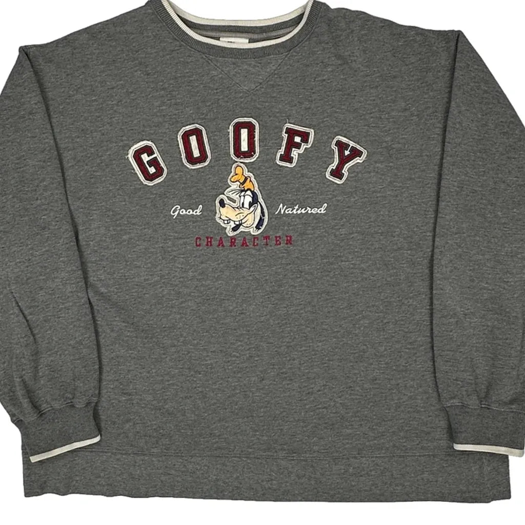 Goofy Character Disney Cartoon Sweatshirt - Large Grey Cotton