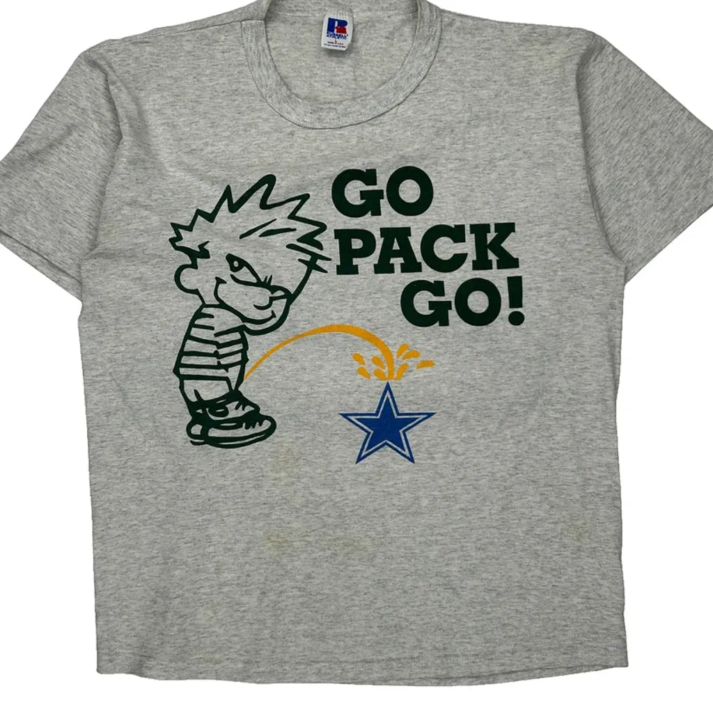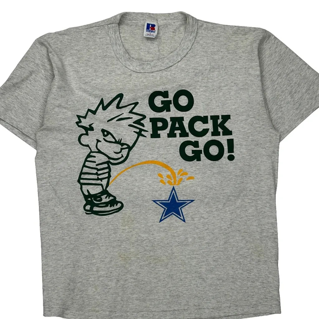 Green Bay Packers Russell Athletic Graphic T-Shirt - Large Grey Cotton