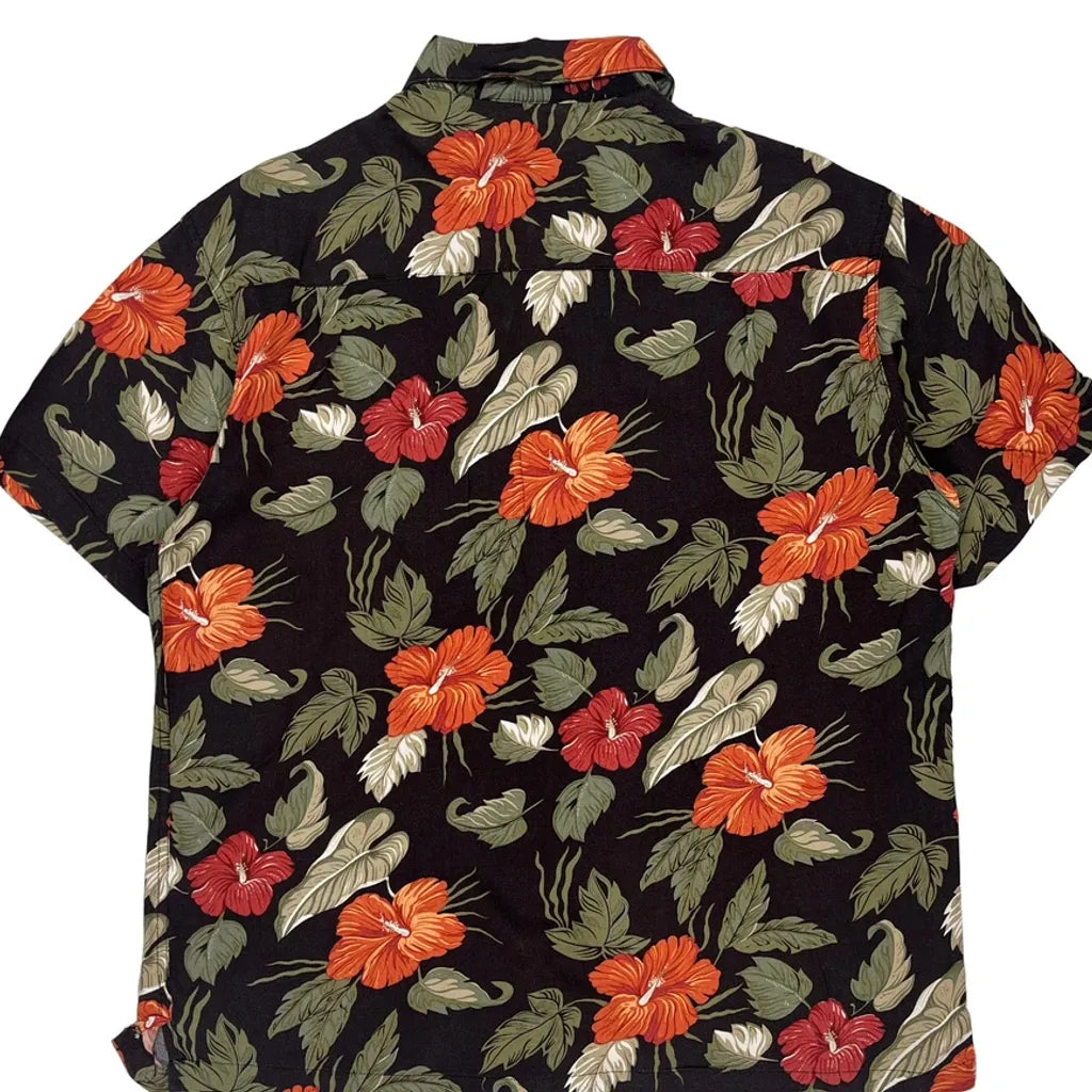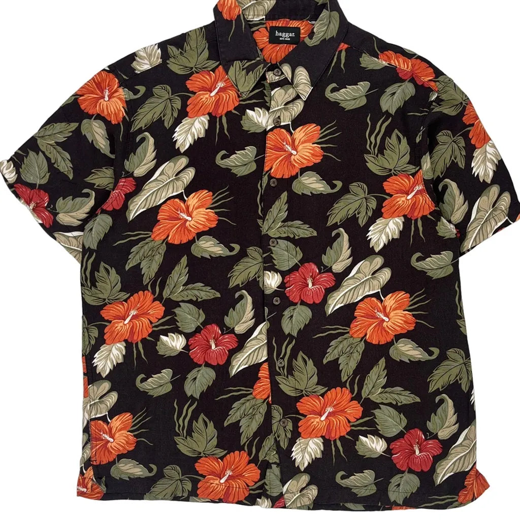 Haggar Floral Hawaiian Shirt - Large Black Cotton