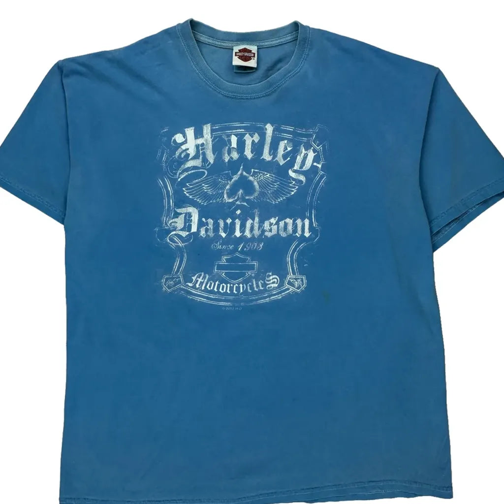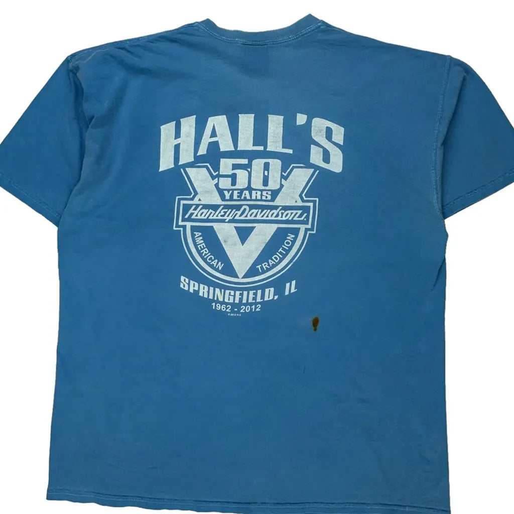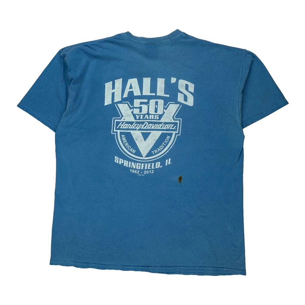 Hall'S 50 Years Anniversary Harley Davidson Graphic T-Shirt - XL Blue Cotton