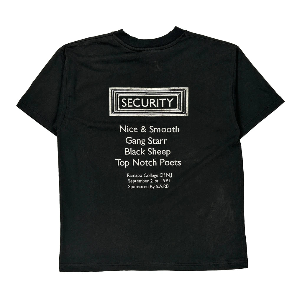 Security T-Shirt With Band Names And Event Details On The Back