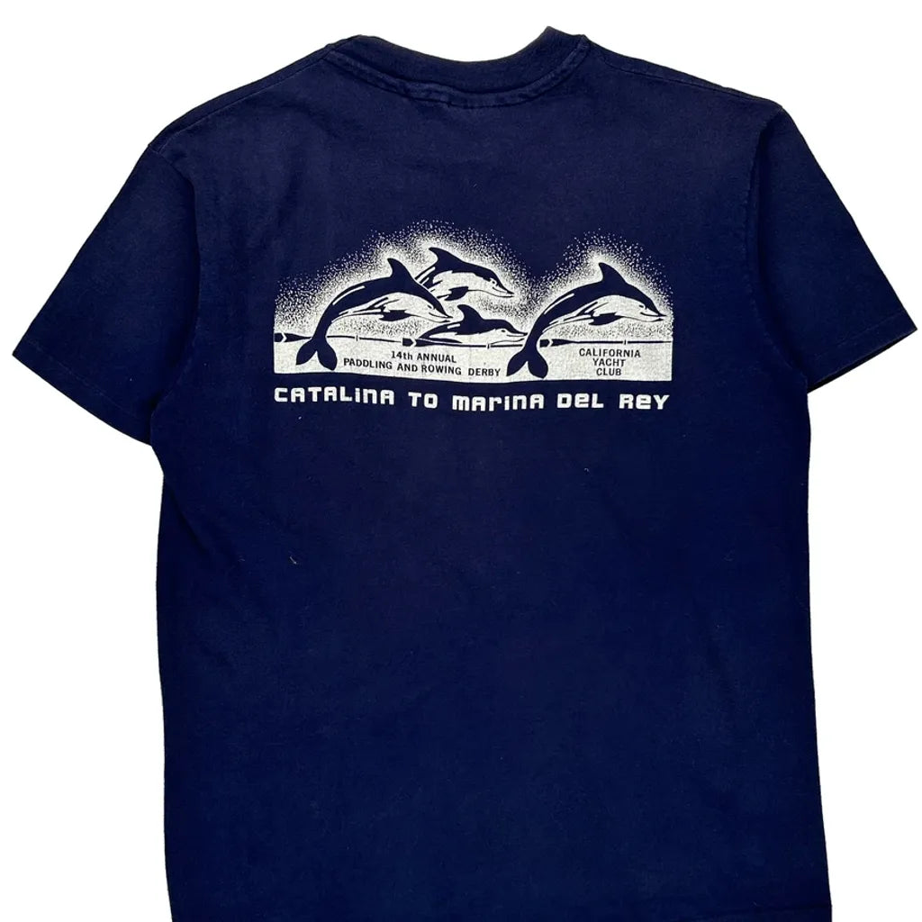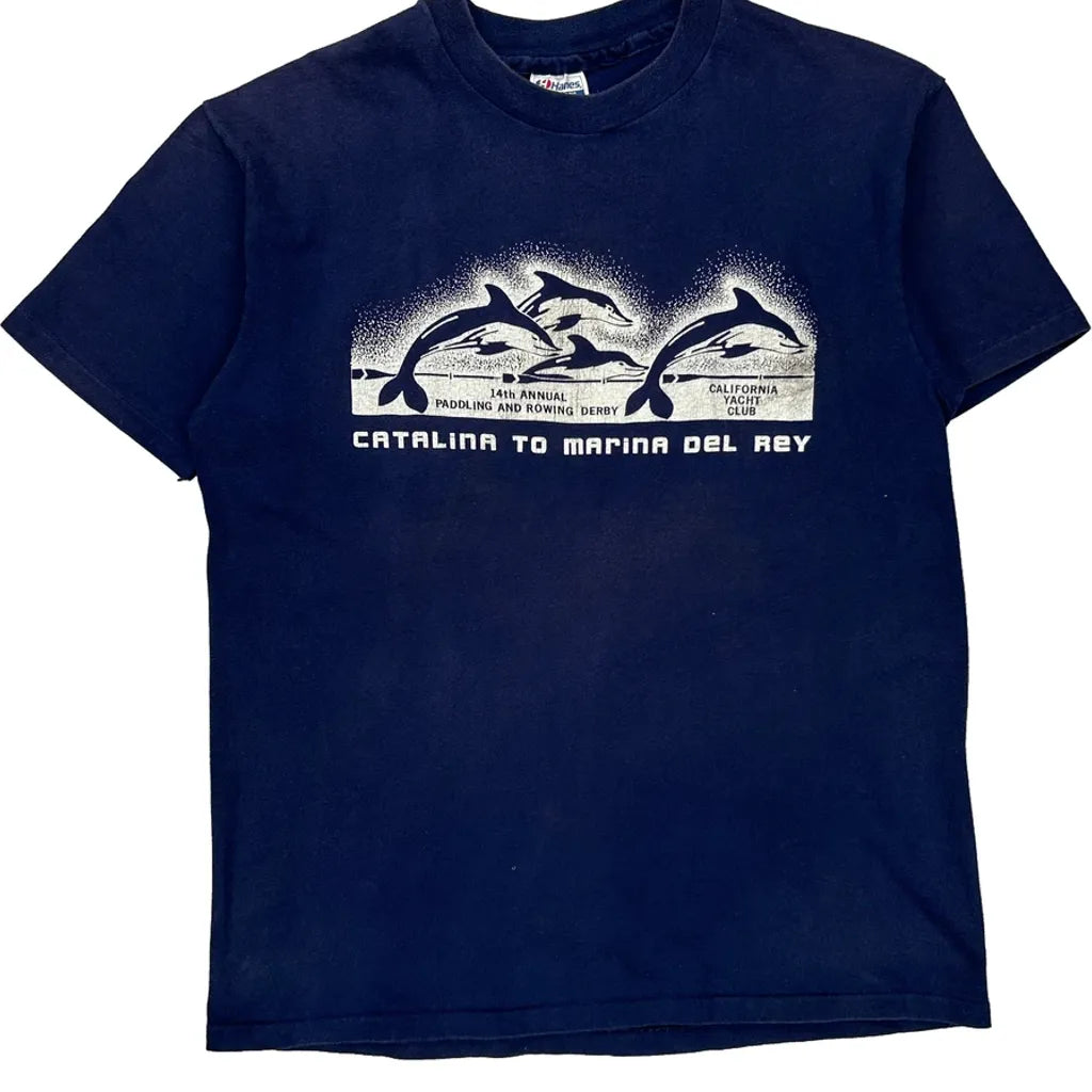 Hanes Single Stitch T-Shirt - XL Blue Cotton