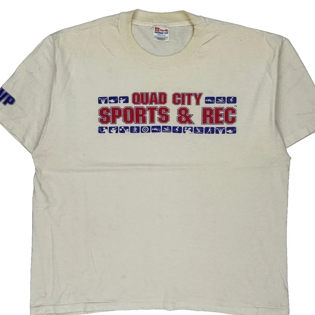 Hanes Single Stitch T-Shirt - XL Cream Cotton Blend
