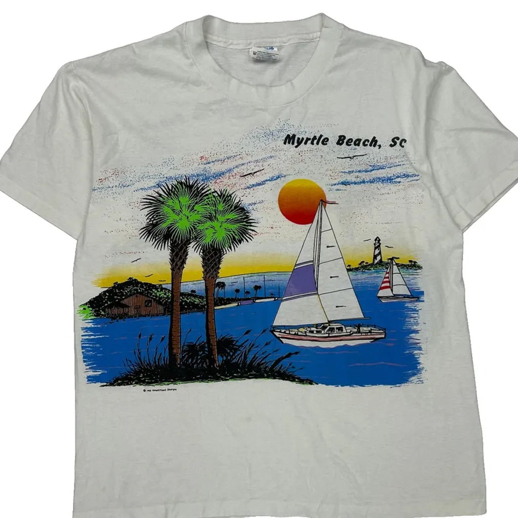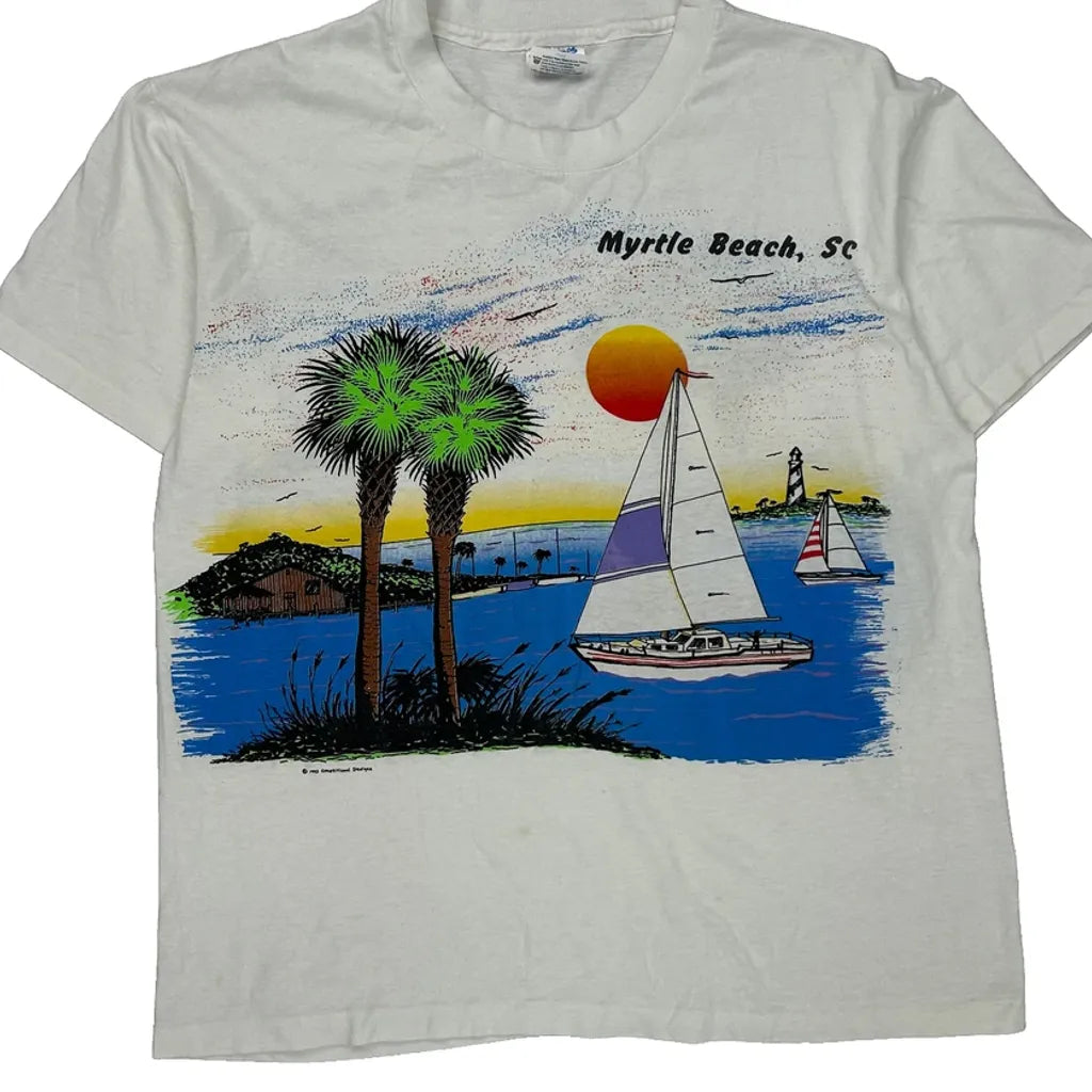 Myrtle Beach, Sc Graphic With Sailboats And Palm Trees
