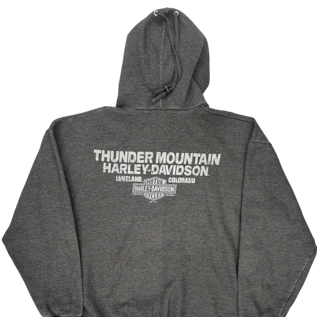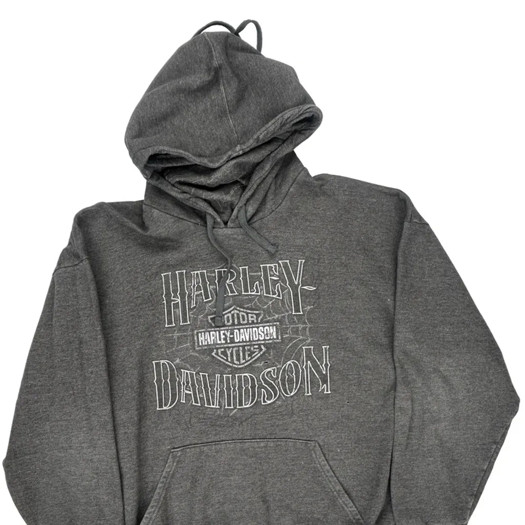 Harley Davidson Graphic Hoodie - Large Grey Cotton Blend