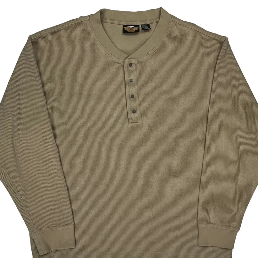 Harley Davidson Long Sleeve T-Shirt - XL Beige Cotton