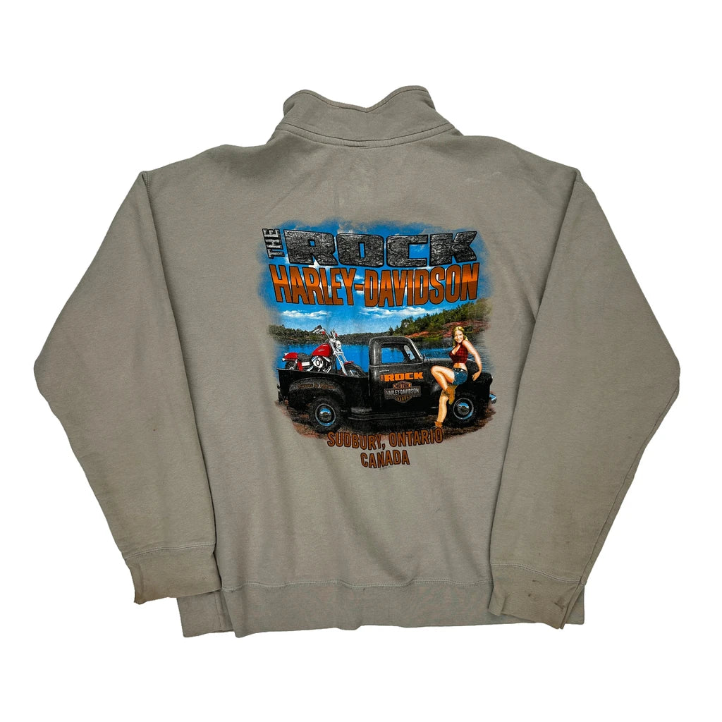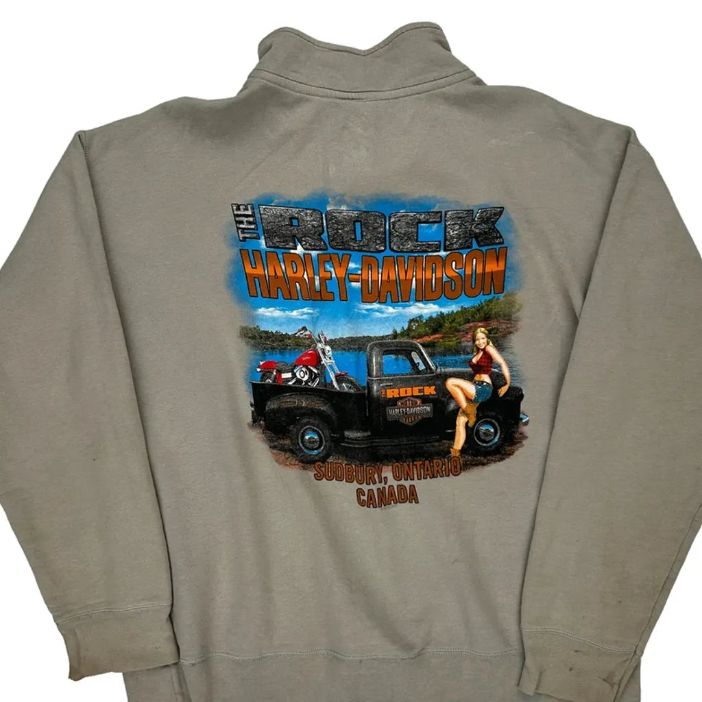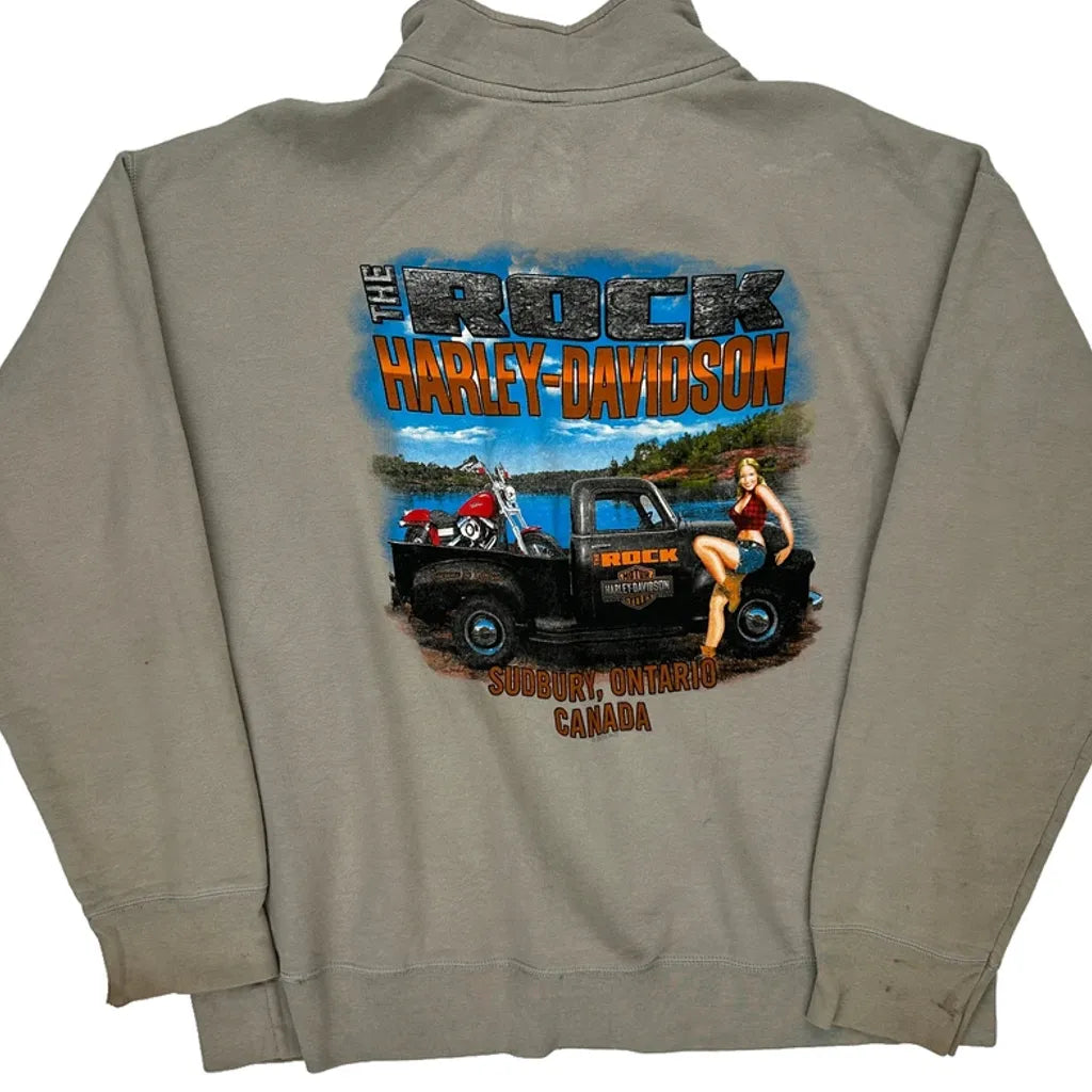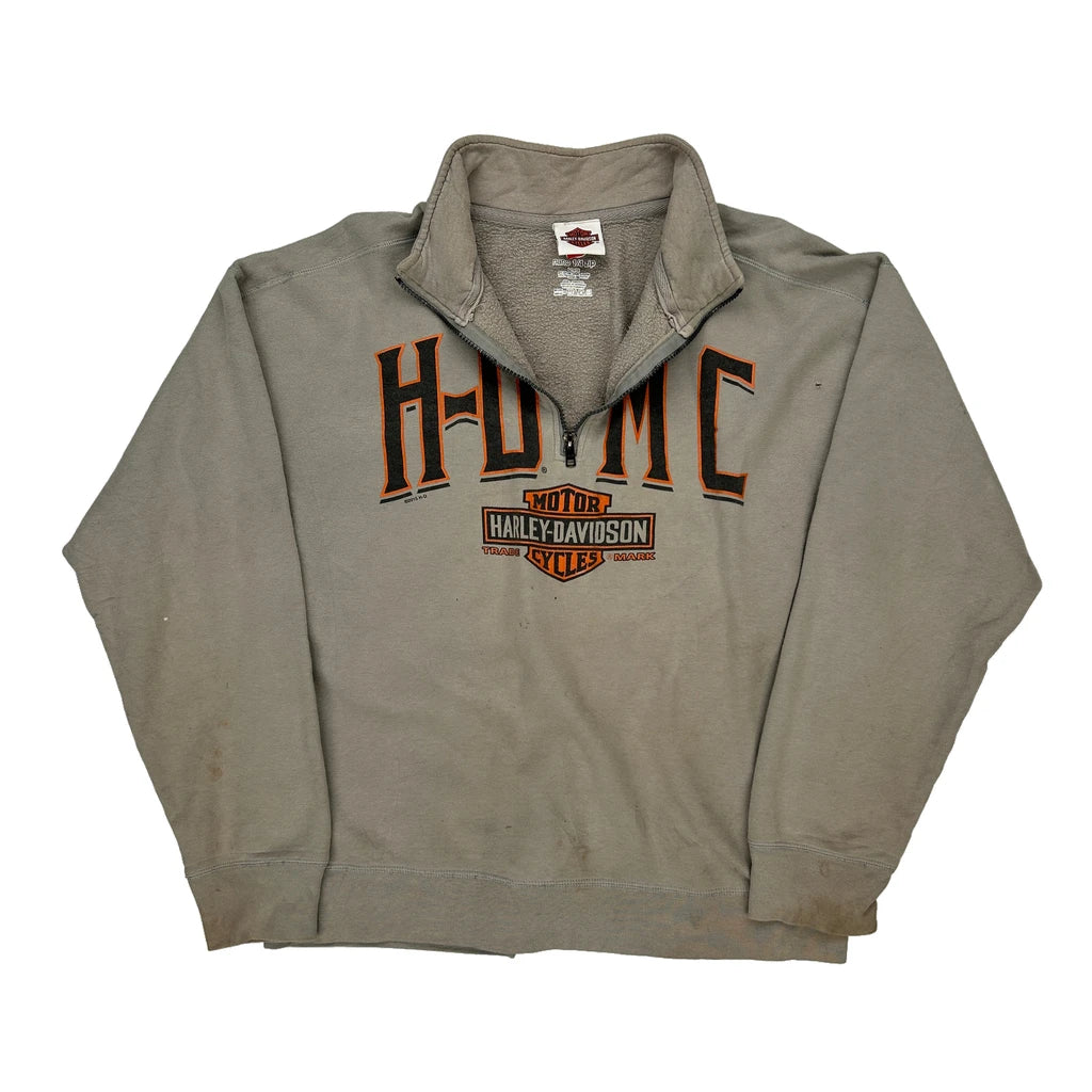 Harley Davidson Graphic Long Sleeve T-Shirt - Large Grey Cotton Blend