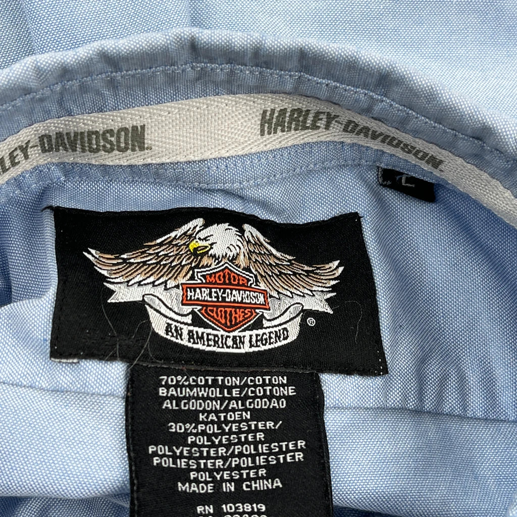 Harley Davidson Shirt - Large Blue Cotton Blend