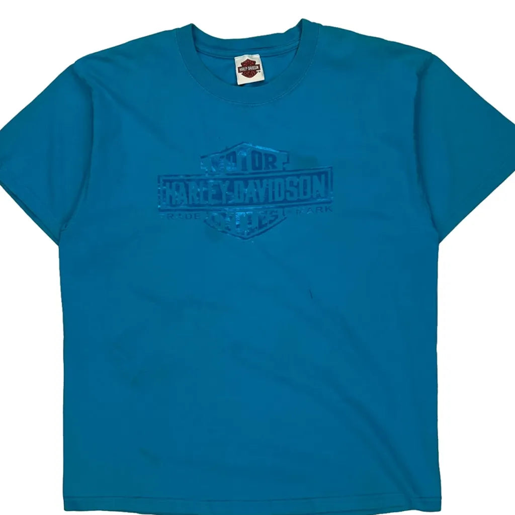 Harley Davidson Graphic T-Shirt - Large Blue Cotton