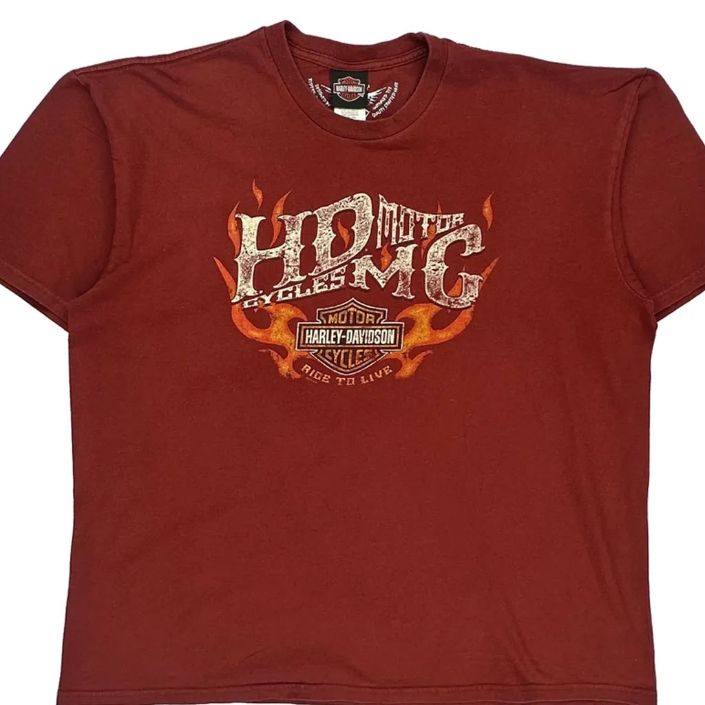 Harley Davidson Graphic T-Shirt - 2XL Red Cotton