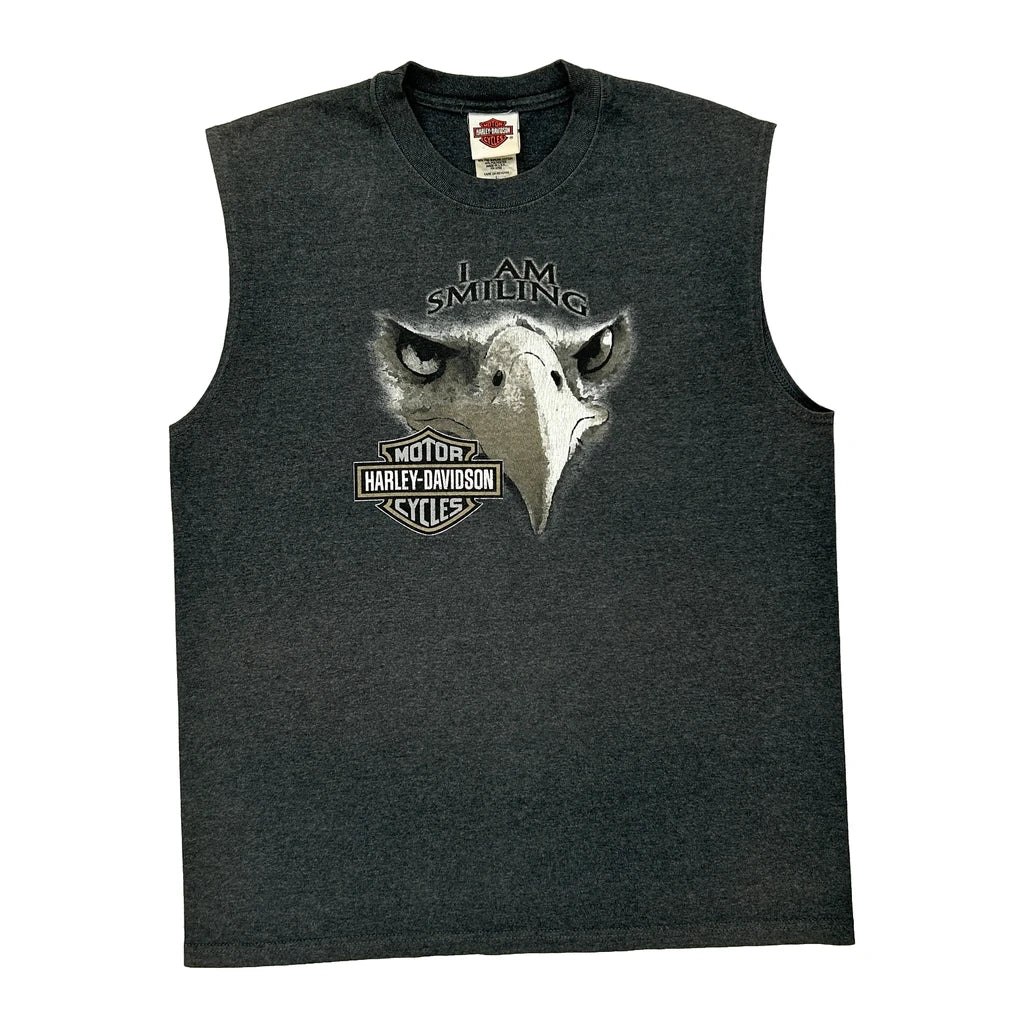 Harley Davidson Vest With Eagle Graphic And 'I Am Smiling' Text