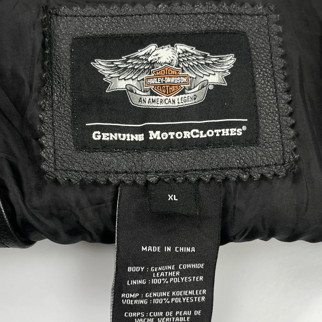 Harley Owners Group Harley Davidson Graphic Leather Jacket - XL Black Leather